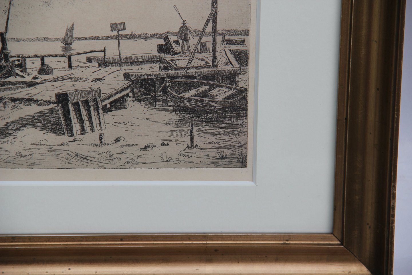 : Radering Havnemotiv 29.5 x 37 cm inklusiv Guldramme