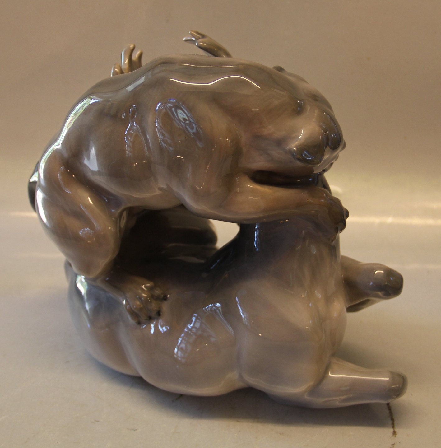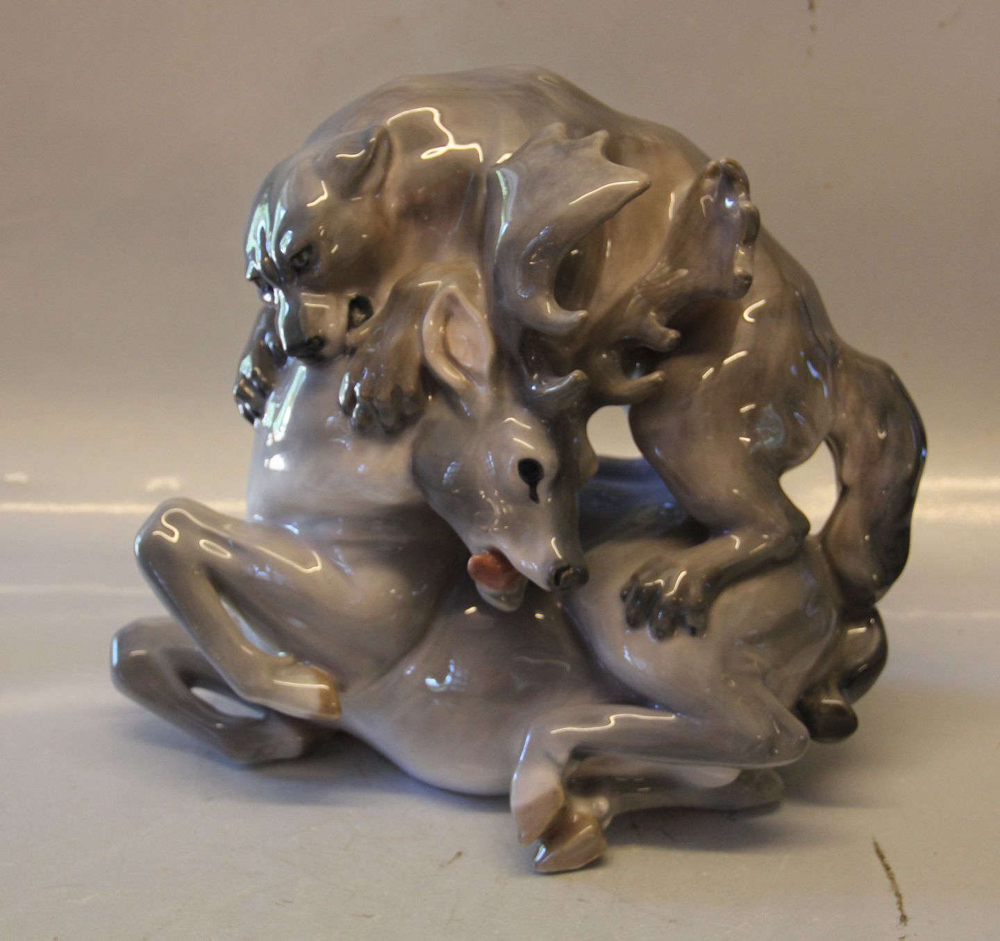 Beskrivelse: 2411 Kgl. Bjergløve angiber hjort 25 x 29 cm KK figur fra Royal Copenhagen I hel og fin stand
