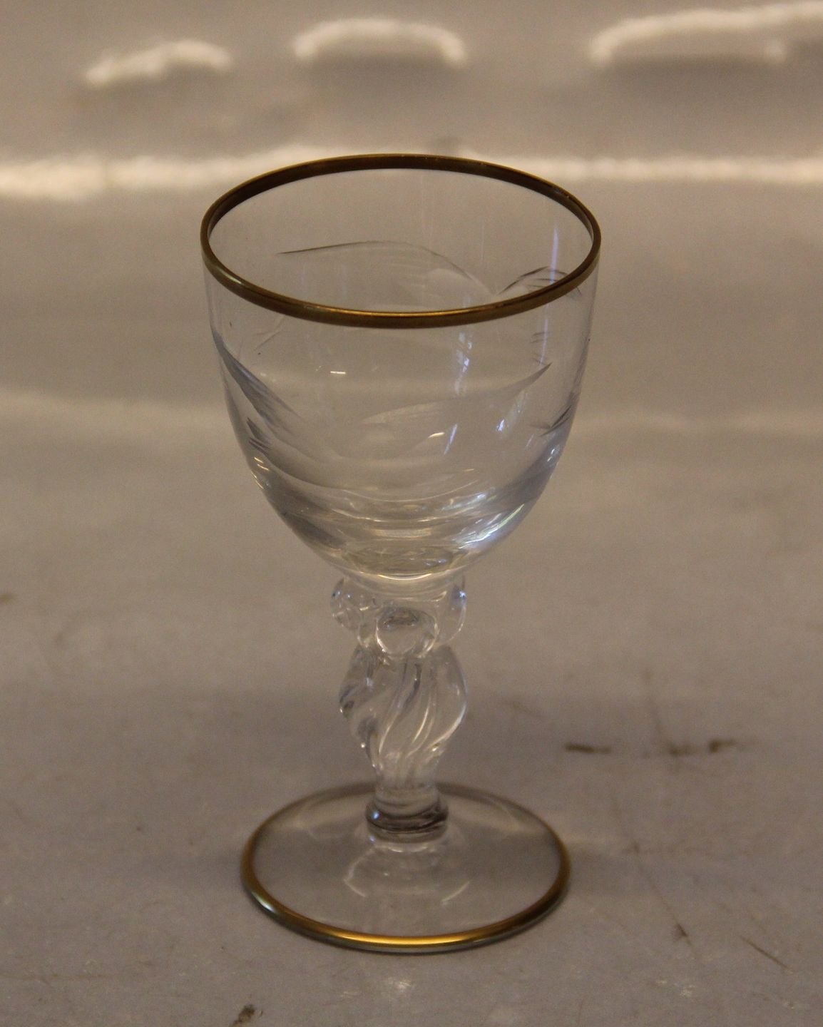 Portvin 9,3 cm Mågeglas Lyngby glasservicce - drikkeglas med guldkant og slebne måger - slebet glas