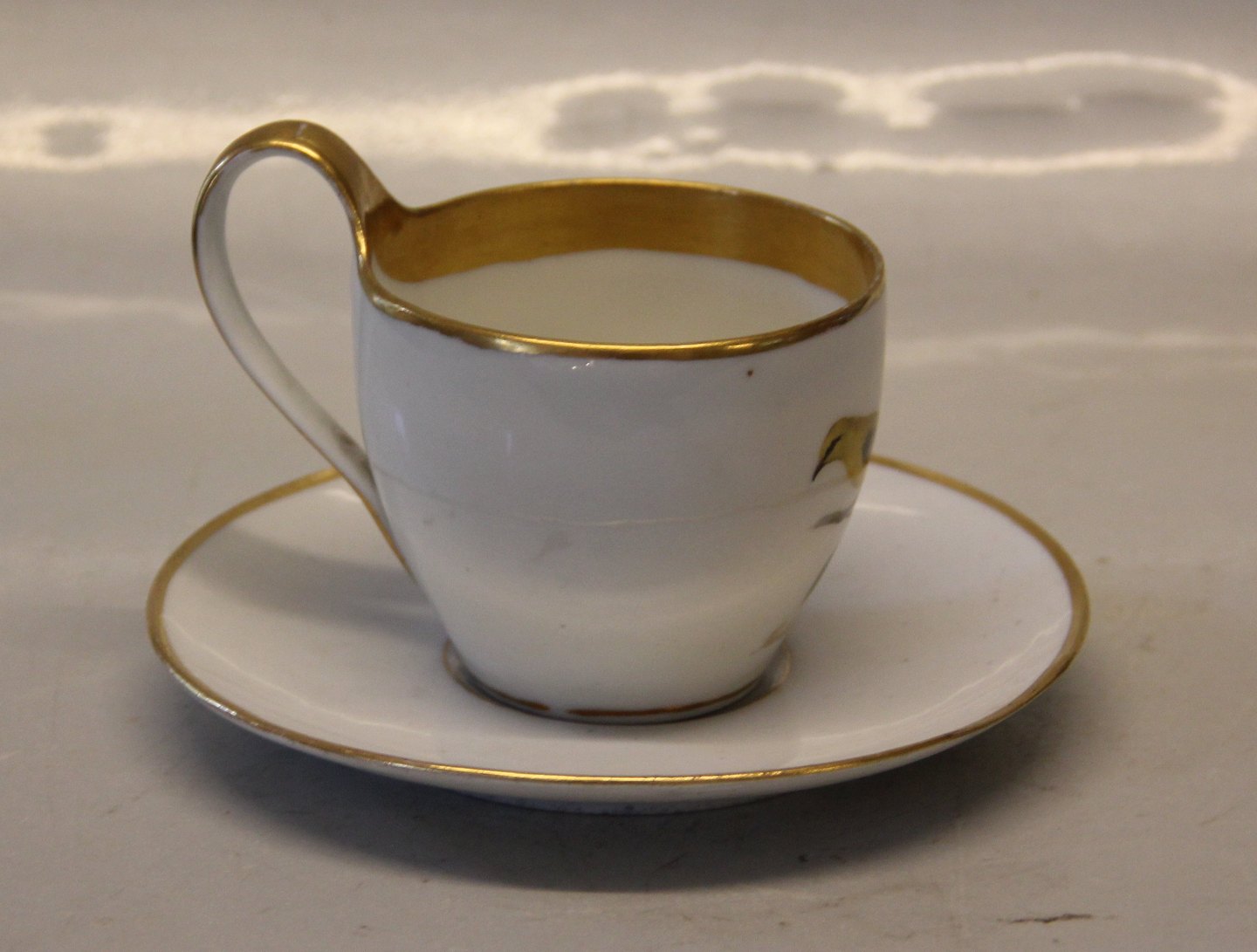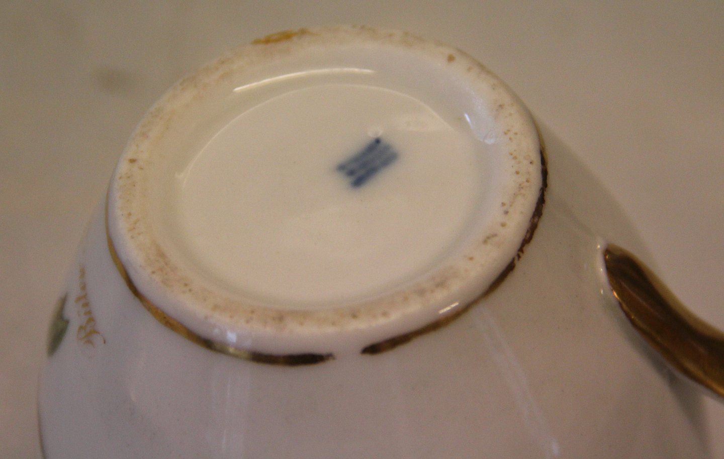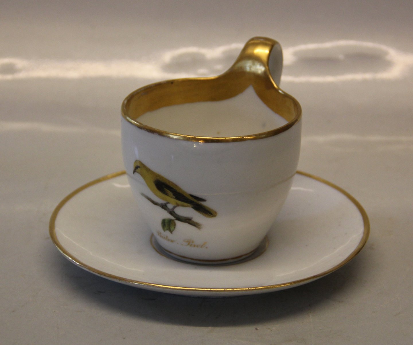 Kongelig Dansk Antik højhankskop med fugl : Bülow Pirol 9 x 9.50 cm & underkop 17 cm ca 1790-1850