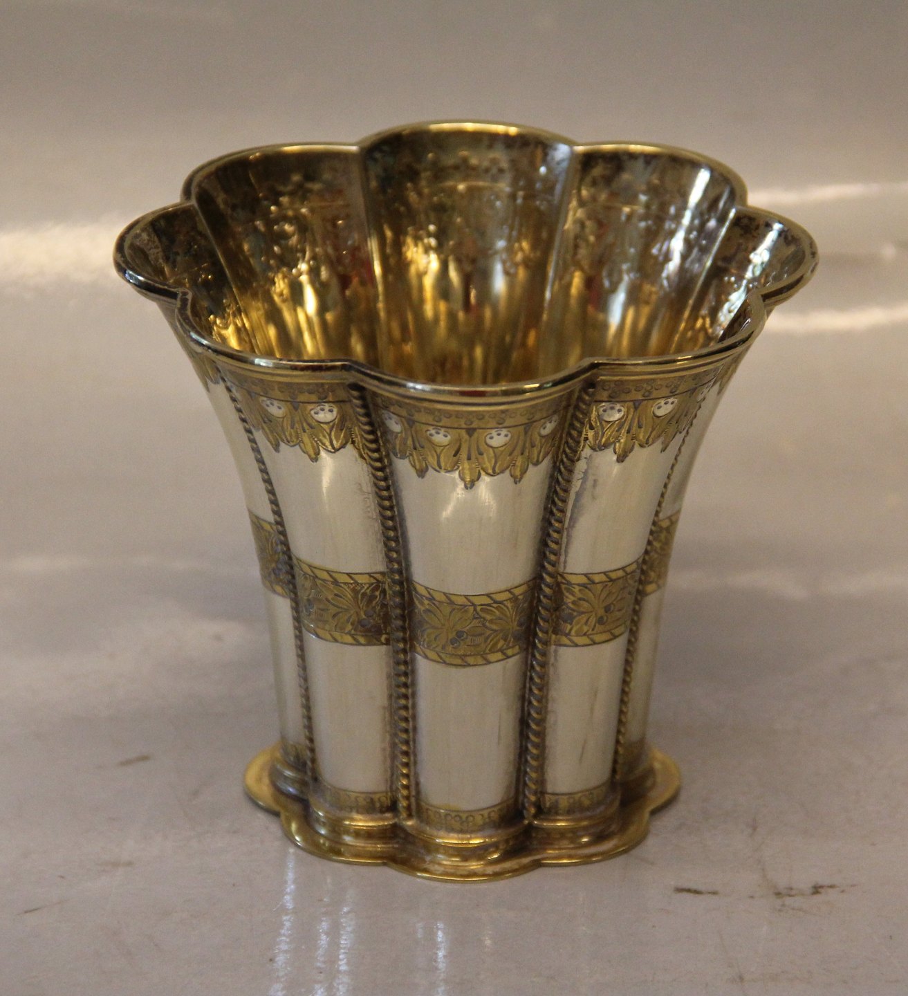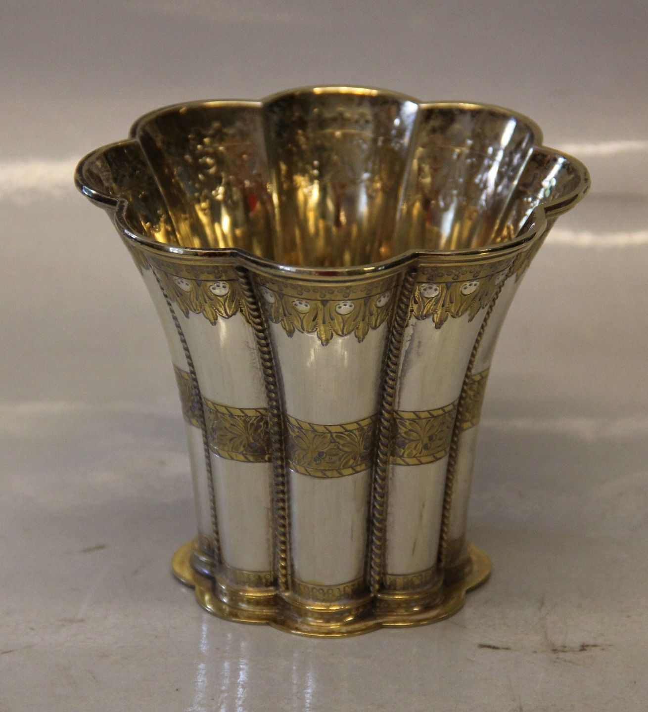 Margethebæger i sølv 9 x 10.5 cm ca 210 gram Stemplet 830 S Sv.T. Svend Toxvær forgyldt