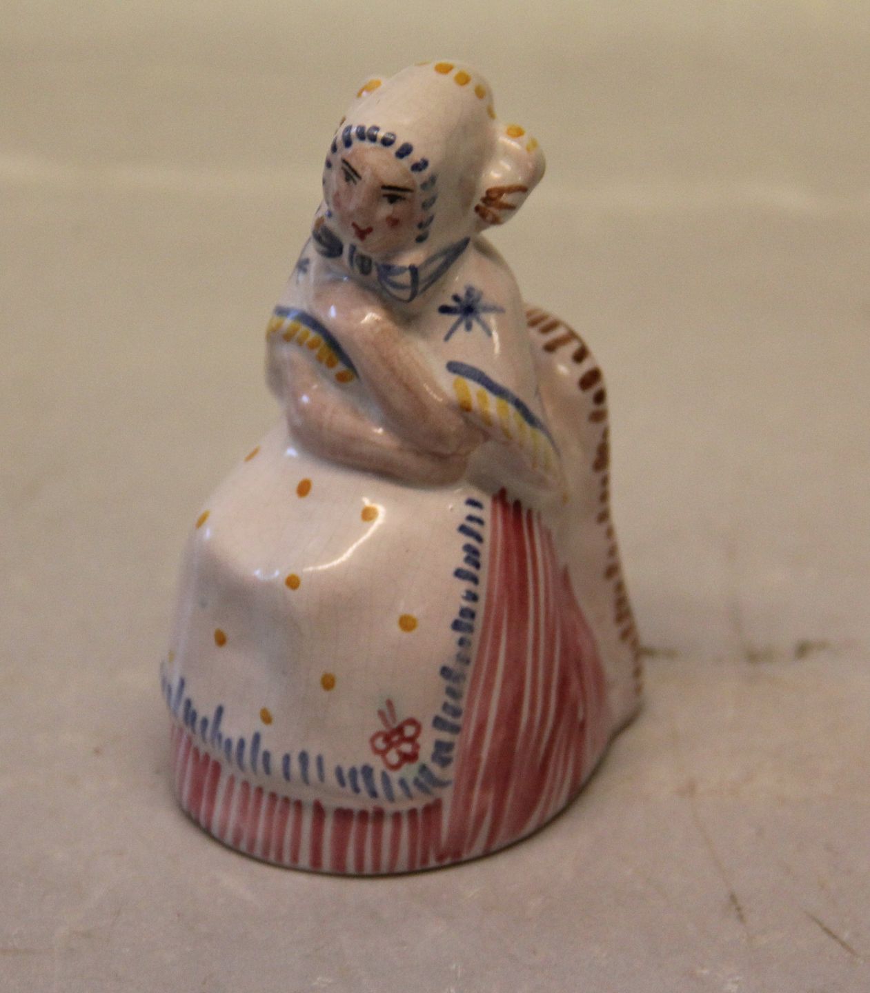 : L. Hjorth miniature Kvinde siddende i stol ca 10 cm Bornholmsk Keramik