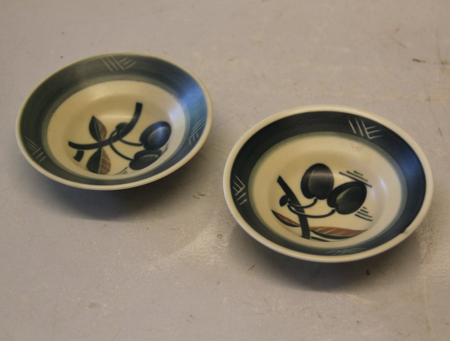 011-11 Rund assiet 9 cm Kirsebær Royal Copenhagen Aluminia Mat Porcelæn (Blødt porcelæn med mat glasur) Design samarbejde mellem Olaf Mathiesen og Nils Thorsson 1927-1932
