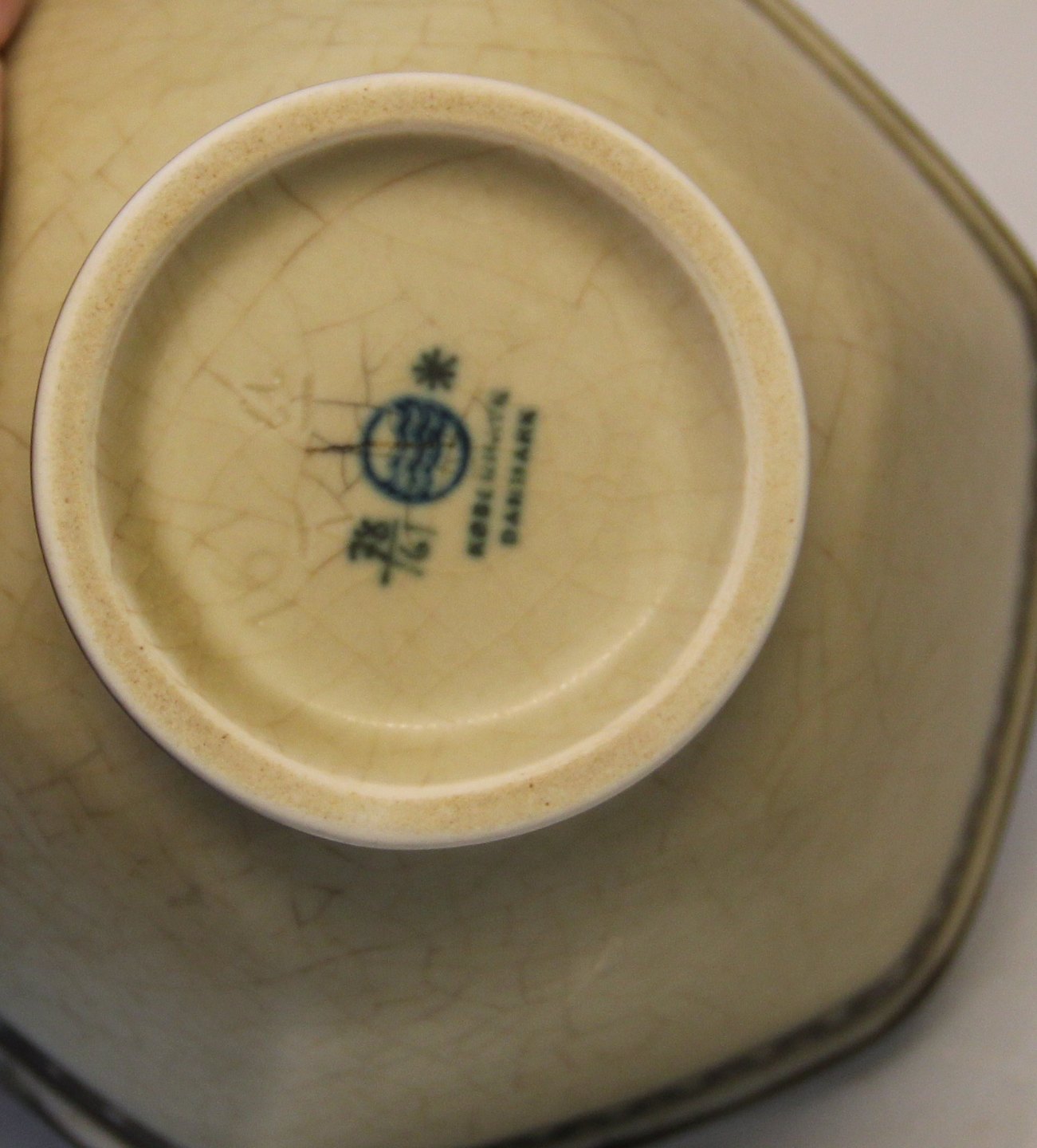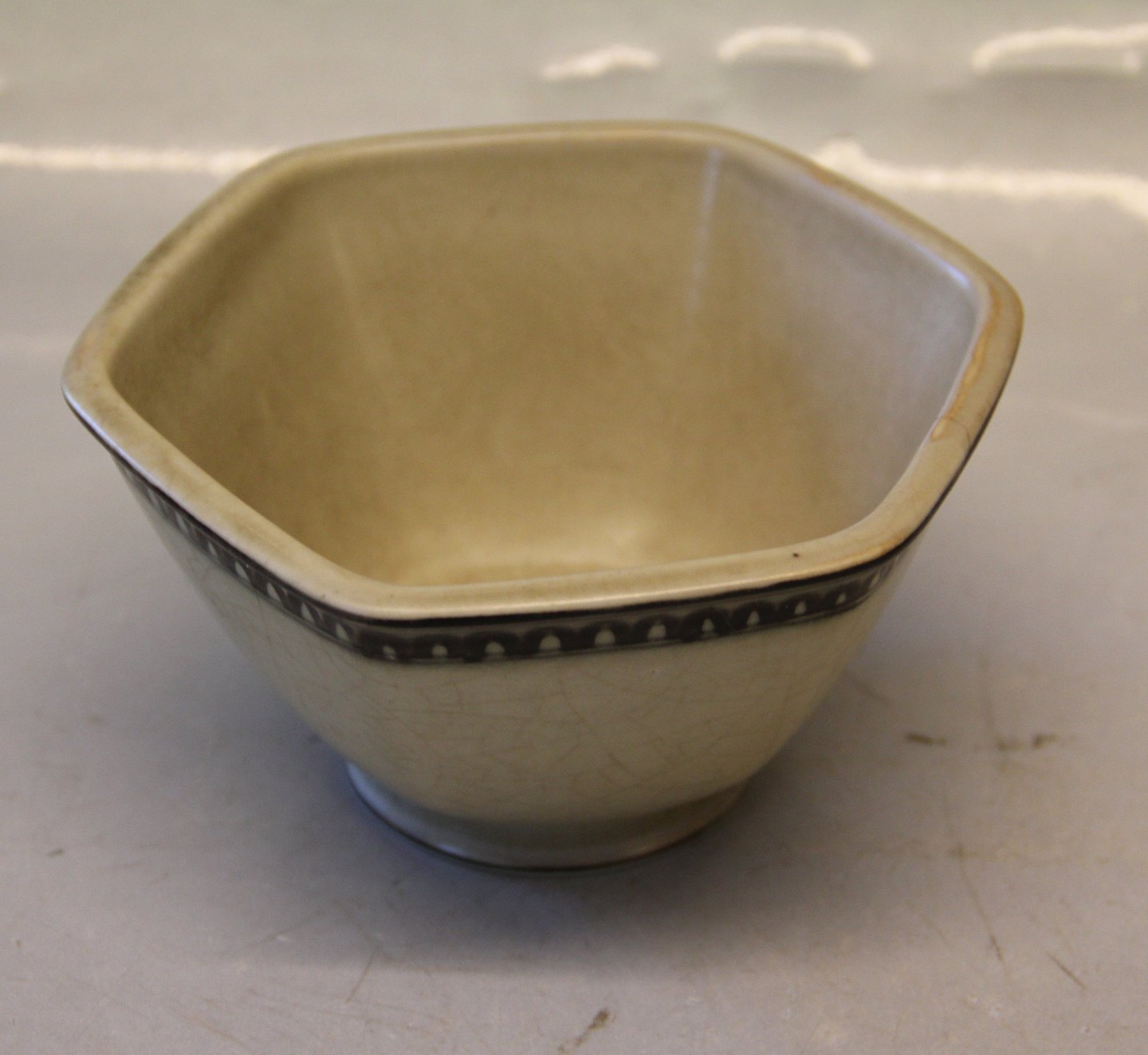 161-78 Kgl. Sekskantet krakkeleret skål 8 x 14.5 cm Royal Copenhagen Aluminia Mat Porcelæn (Blødt porcelæn med mat glasur) Design samarbejde mellem Olaf Mathiesen og Nils Thorsson 1927-1932