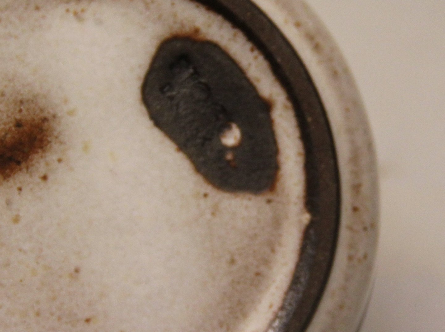 Dåse med låg 8 x 12 cm Stogo Beige Stentøj fra Mørkøv Keramikfabrik. Design H. Gottschalk-Olsen. Ovnfast i fin og hel stand