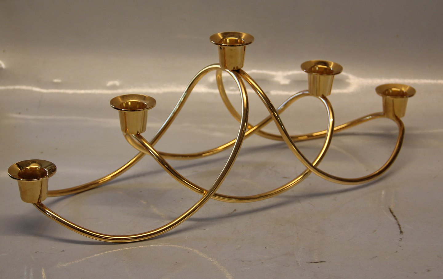 : Georg Jensen Harmony lysestage til fem lys Forgyldt 14.5 x 41 cm