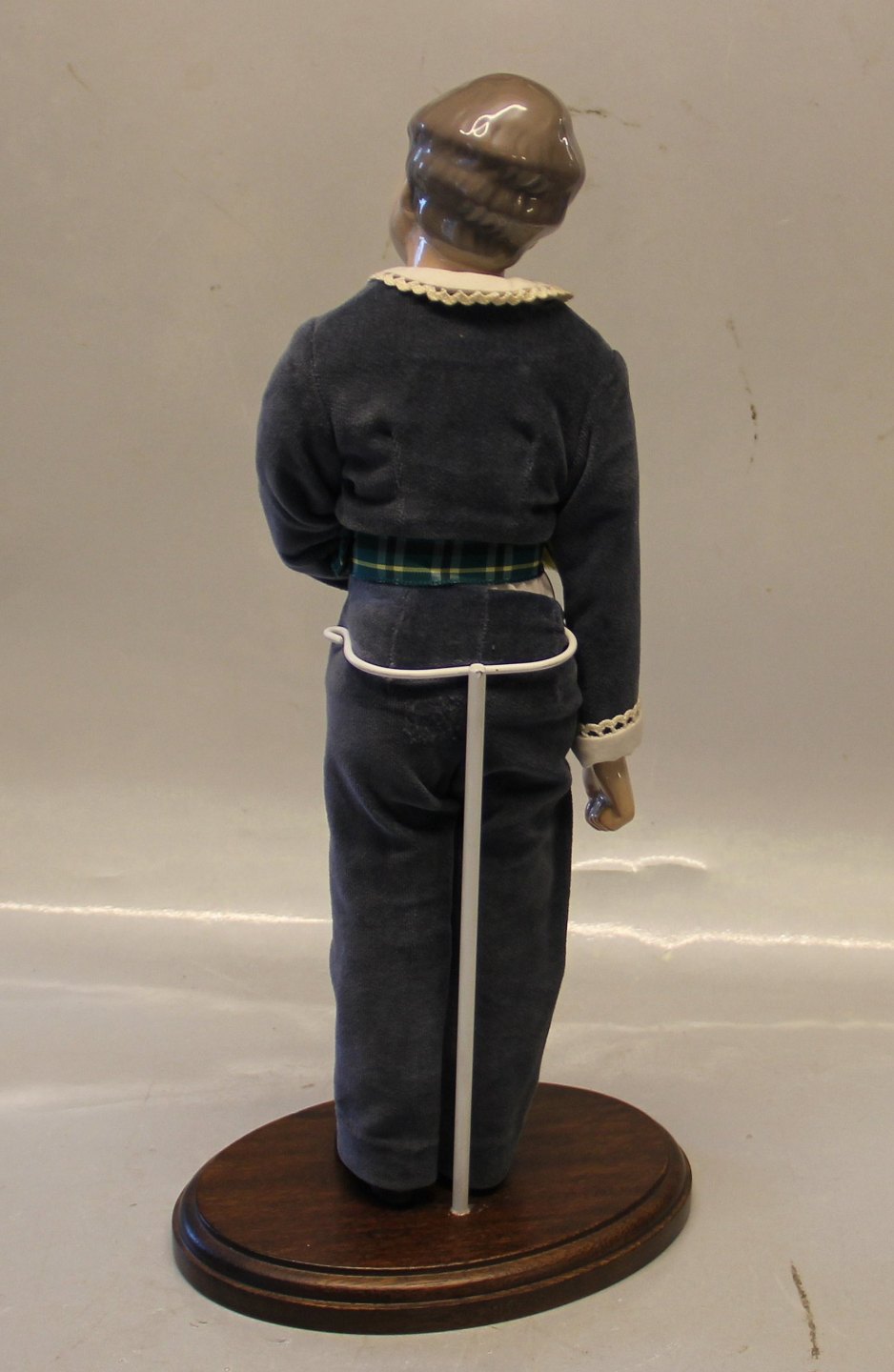 Bing & Grøndahl B&G 1986 Årsdukke "Hans" 38 cm m stativ og træstand På frierfødder dreng med blomster
