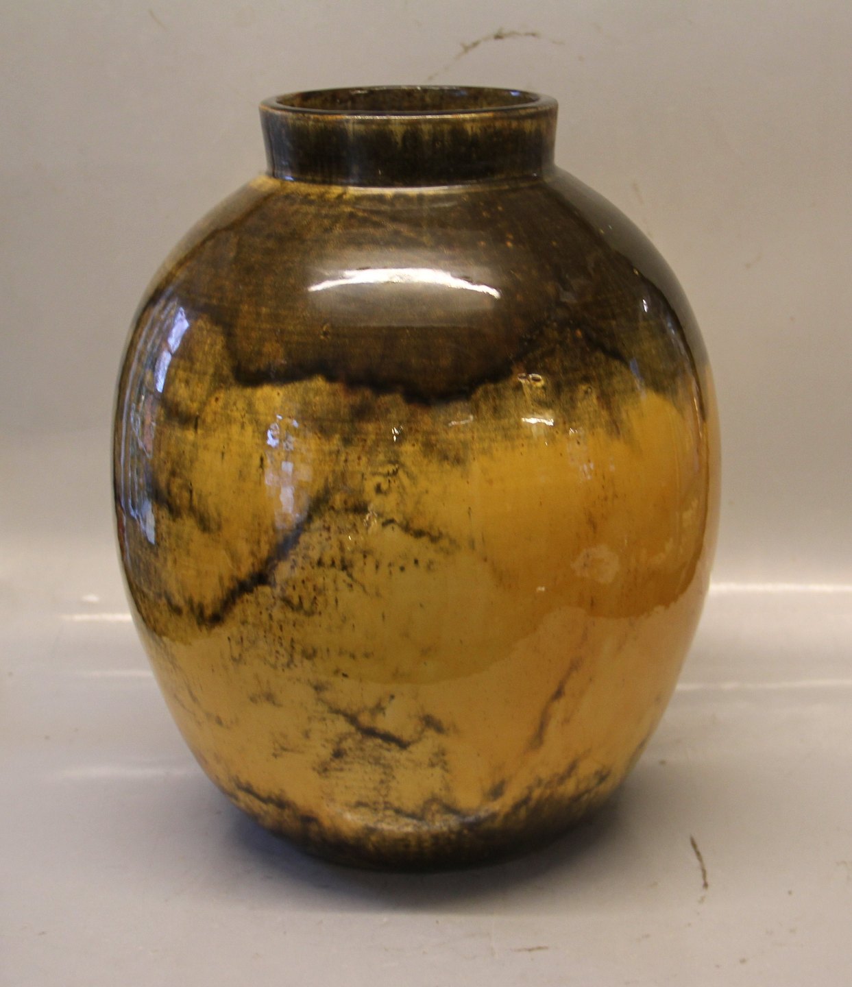 Beskrivelse: Stor Urangul Gulvvase stemplet HAK 33 x 25 cm Svend Hammershøi I fin og hel stand