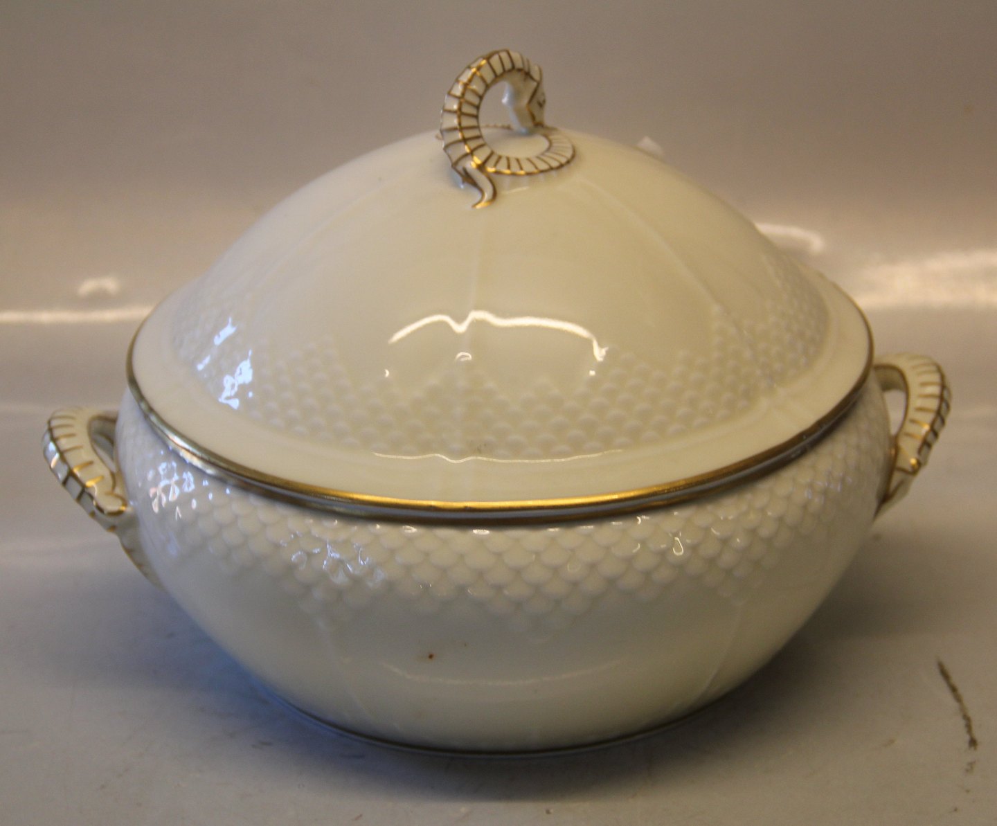 005 a Lågfad (512) Åkjær Bing & Grøndahl Spisestel på Cremefarvet porcelæn, med skæl. Aakjær Åkær I fin og hel stand.