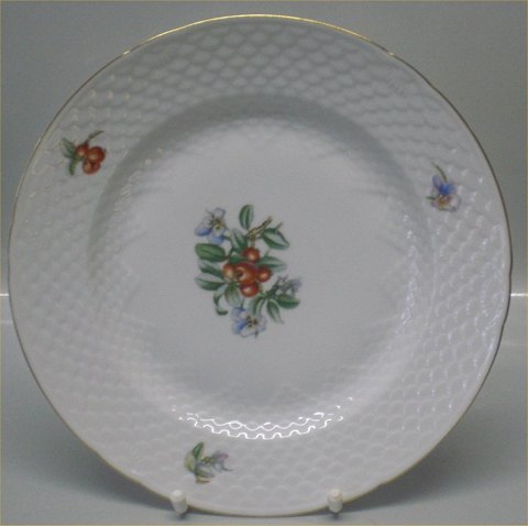 025 Middagstallerken 24 cm (325) Bing & Grøndahl Ægir spise- og kaffestel på den skællede grundform form 356: Hvidt porcelæn, tyttebær og vild stedmoderblomst (dekoration som Ymer og Rio)