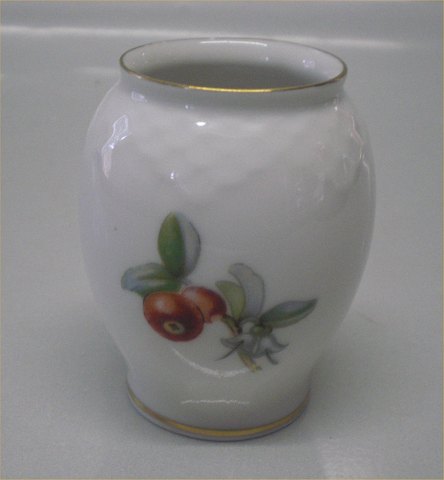 208 Vase 7 cm (671) Bing & Grøndahl Ægir spise- og kaffestel på den skællede grundform 356: Hvidt porcelæn, tyttebær og vild stedmoderblomst (dekoration som Ymer og Rio)