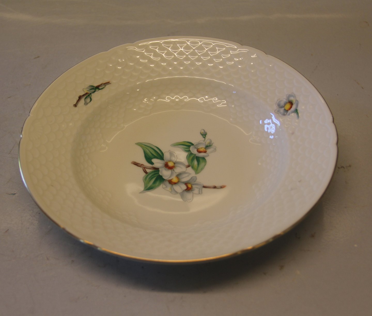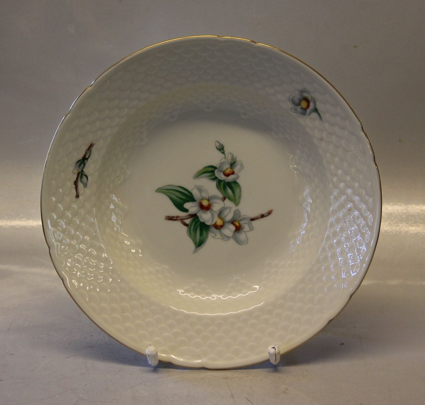 023 Lille Dyb tallerken 22 cm (323) Bing & Grøndahl Heimdahl - kremefarvet porcelæn med guldkant dekoreret med Jasmin - ikke at forveksle med Æbleblomst I fin og hel stand