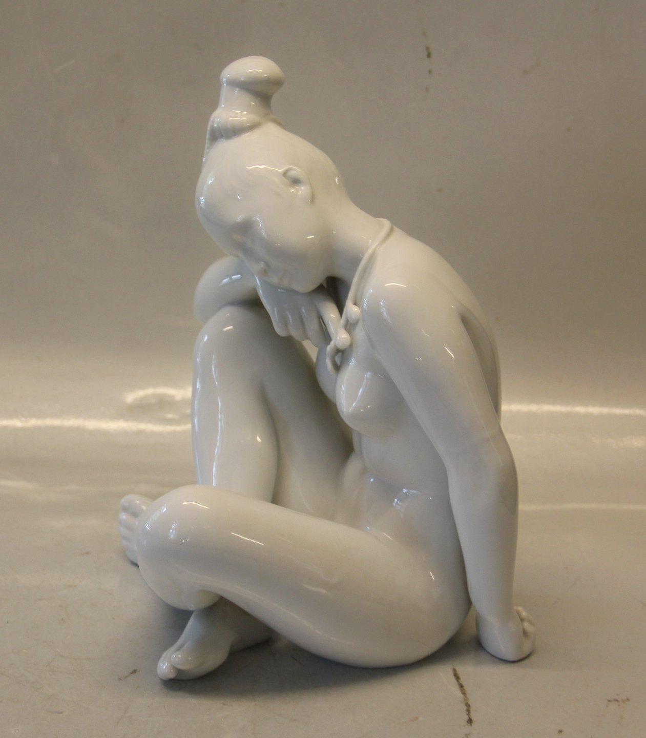 Beskrivelse: B&G 2281 Siddende grønlandsk pige 66 x 22.5 cm , hvid Bing & Grøndahl I fin og hel stand. Inuit pige fra Grønland med Thulekæde