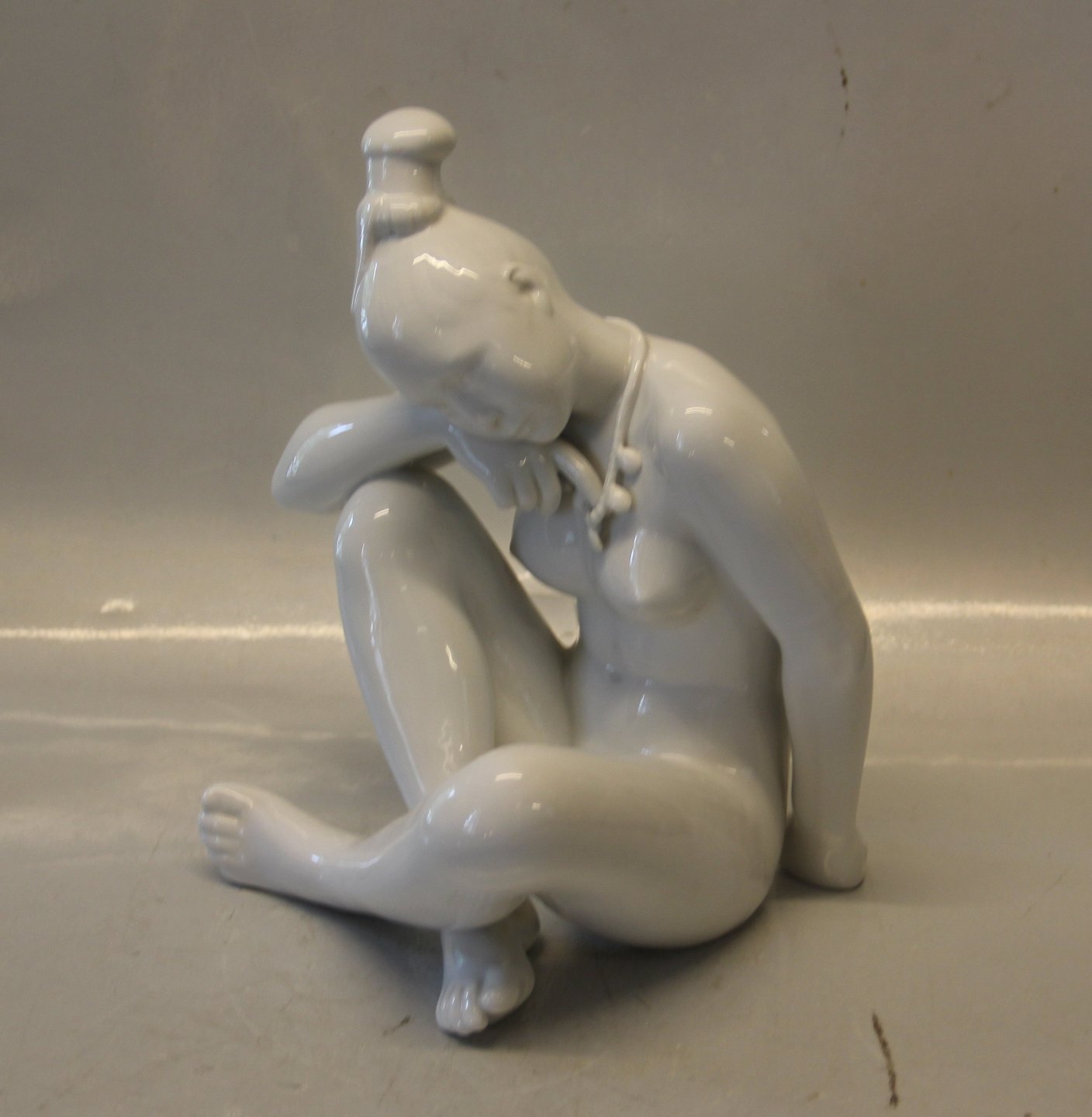 B&G 2281 Siddende grønlandsk pige 66 x 22.5 cm , hvid B&G figur