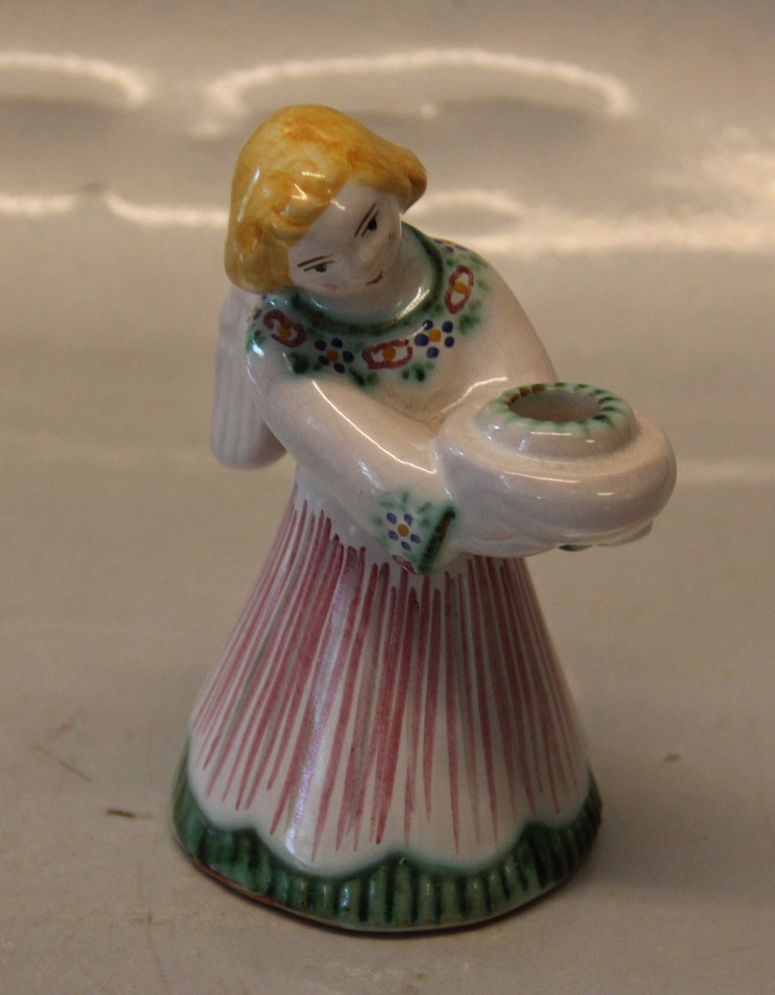 Engel med rødstribet kjole fra L. Hjort Bornholm 11,5 cm Lysestage