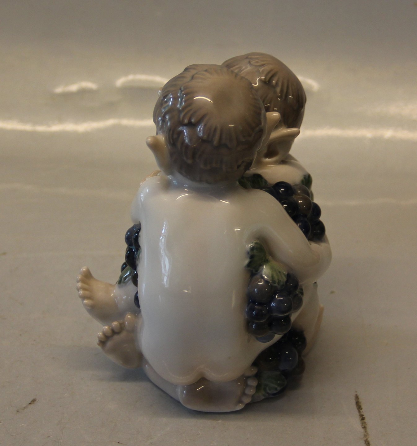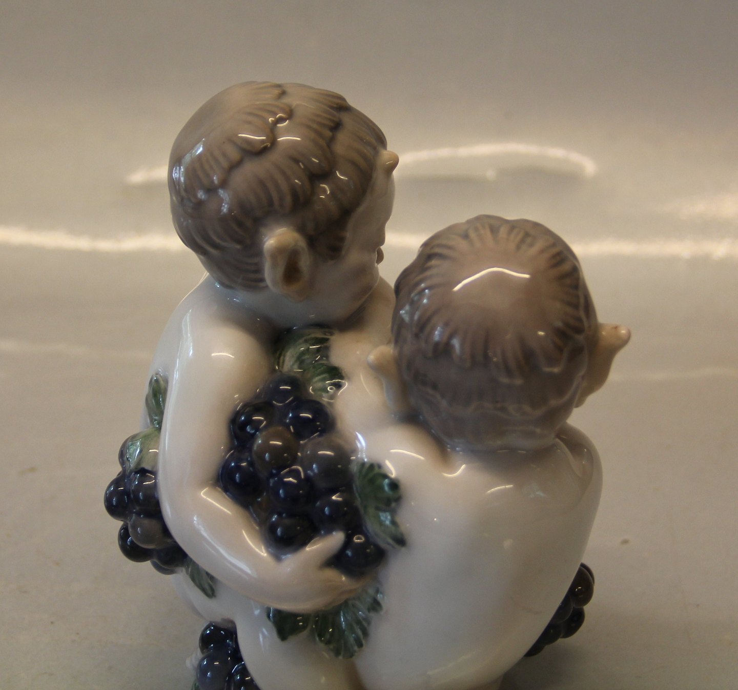 Beskrivelse: 2573 Kgl. 2 panfigurer med druer 14 x 11 cm Hans Henrik Hansen 1925 fra Royal Copenhagen I hel og fin stand