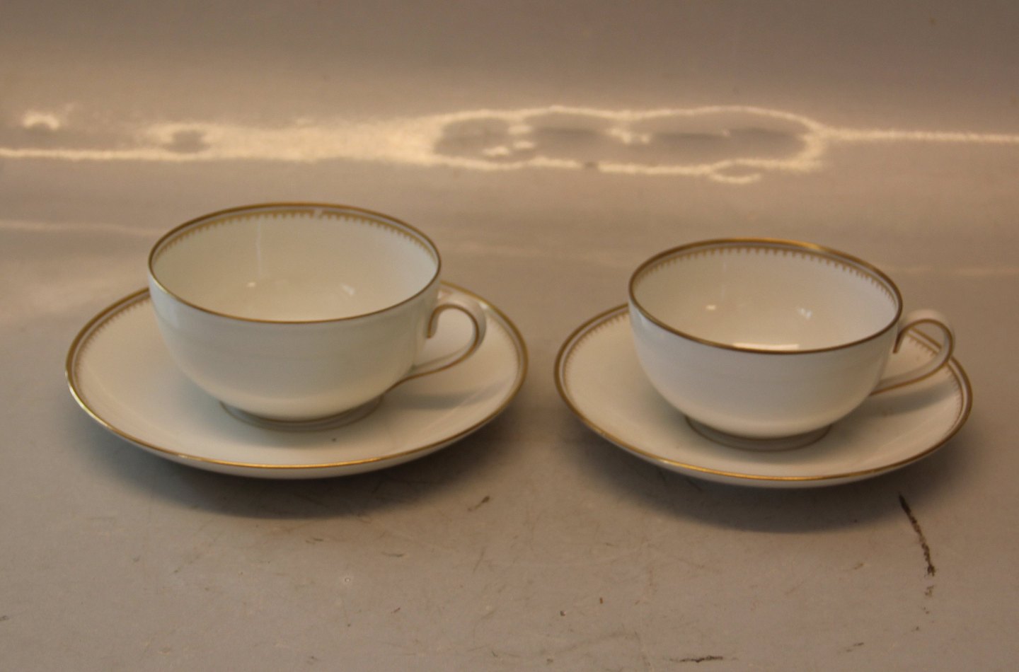 108 Tekop (9.8 x 5 cm) 1,5 dl og underkop 15.5 cm (473) B&G Menuet: Hvidt porcelæn, takket guldkant, hvid, form 601