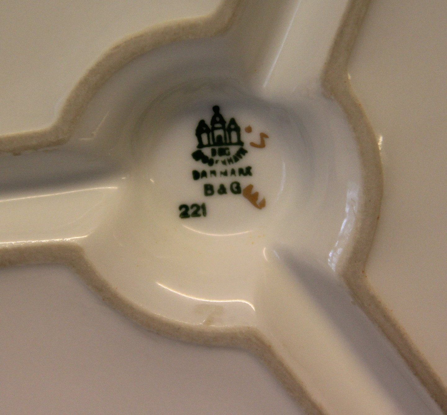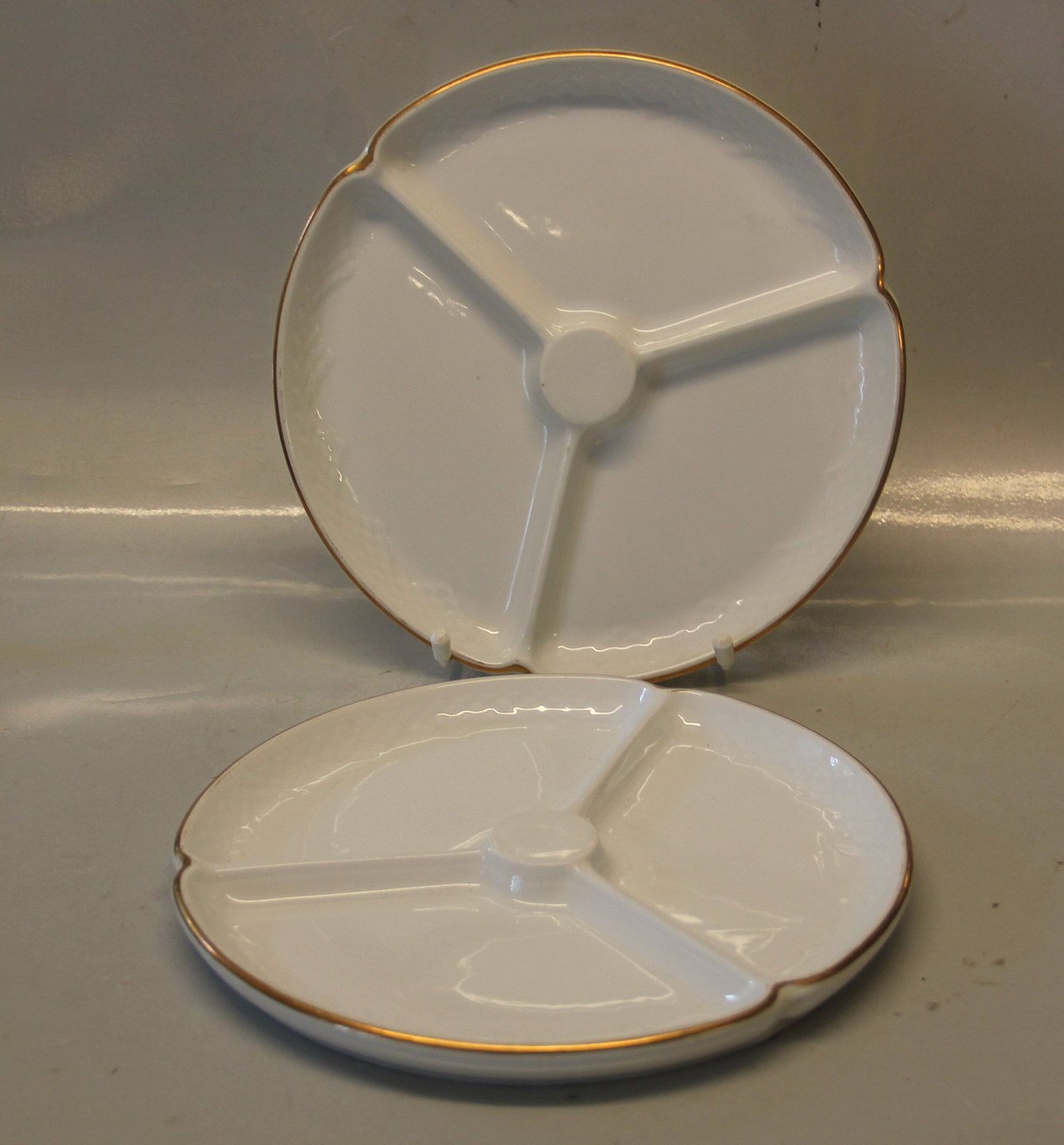 221 Kabaret fad 23,5 cm (uden knop) Bing & Grøndahl Hartmann Hvidt porcelæn med dobbelt guldkant. Bing & Groendahl I hel og fin stand