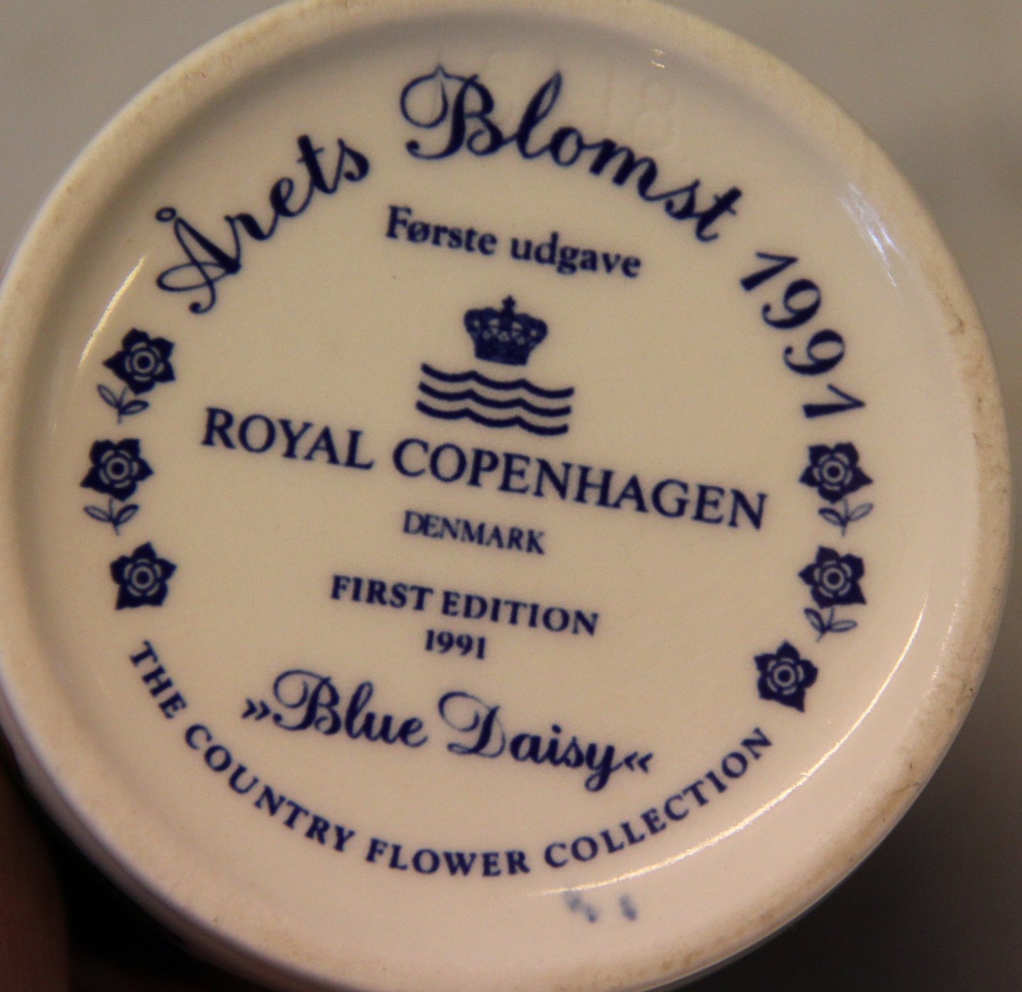 Kongelig Dansk 1991 Blå margueritte Krus 9 cm Årets Blomst 1. udgave