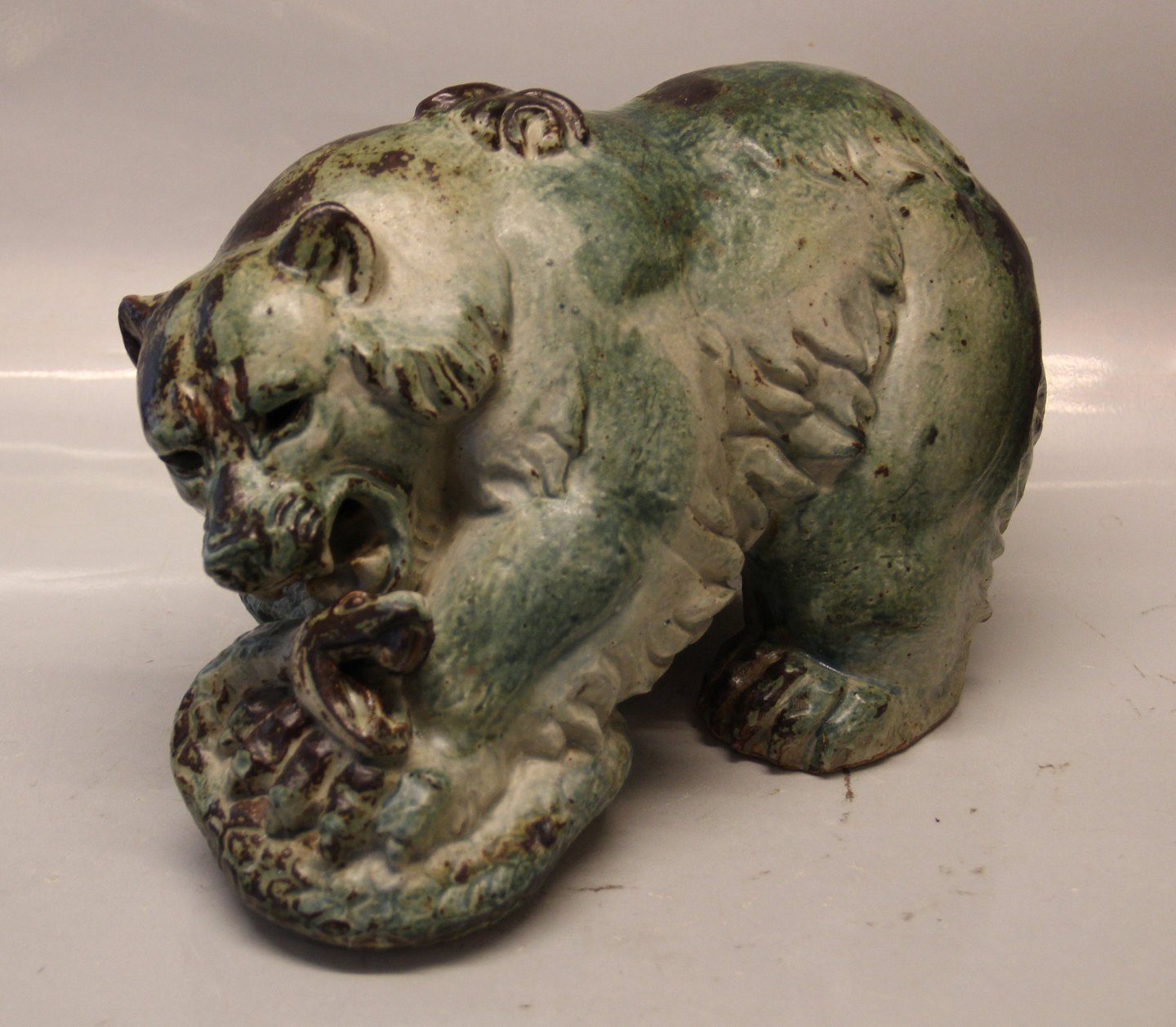 Kongelig Dansk Stentøj 20213 Kgl. Bjørn med slange ca. 20 x 35 cm , Knud Kyhn, november 1929
