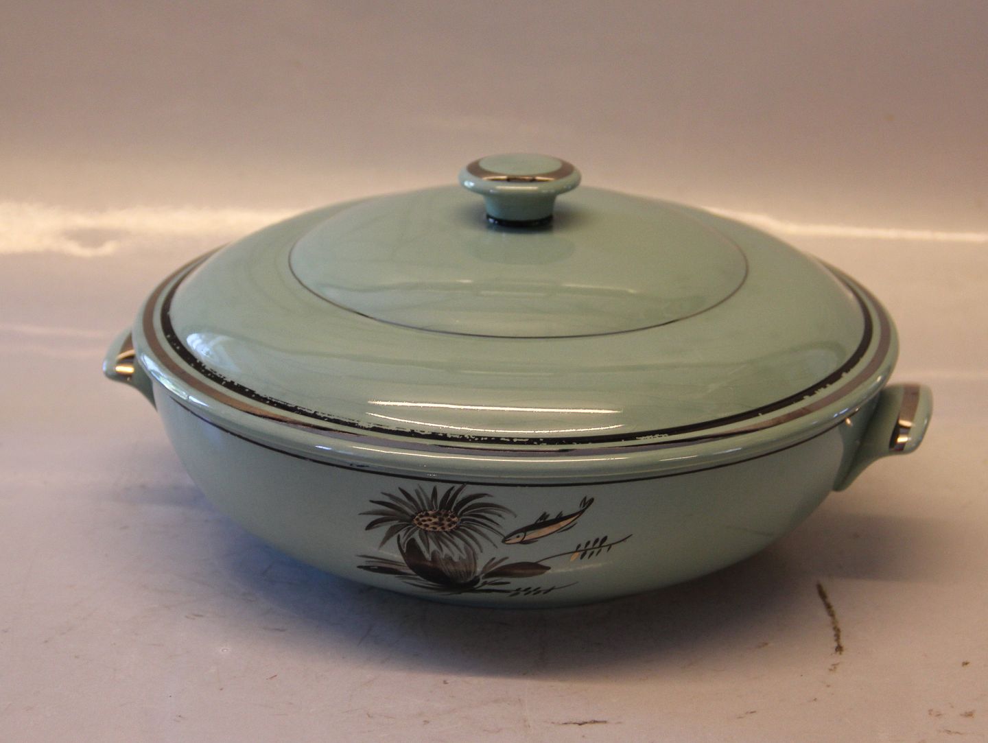 Baldur Grønt fiskestel Aluminia kunstfajance Lågfad 12 x 28 cm