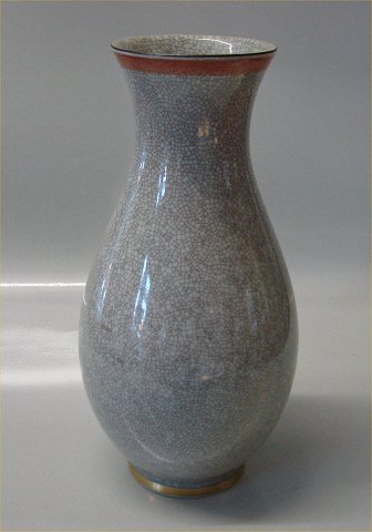 259-3473 Kgl. grå vase med rødt og guld 25 cm Kongelig Dansk Craquelé, Craquele
