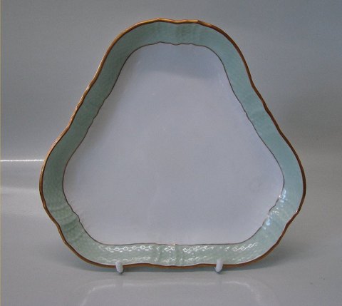 1526-952 Trekantet skål 22 cm Svejfet # 952 Kongelig Dansk Spise- og kaffestel med grøn bort