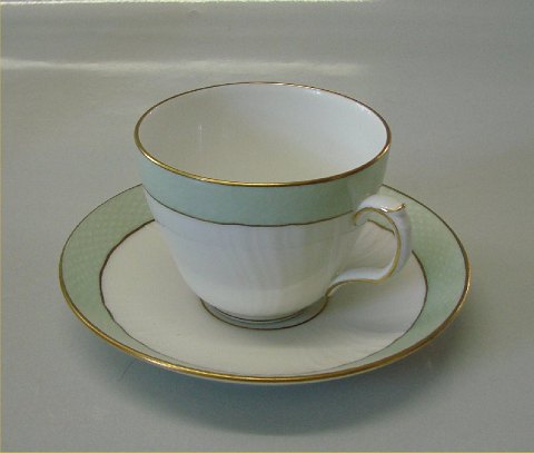1870-952 Kaffekop 6.5 x 8 cm /18 cl. (072) og underkop 14,4 cm (071) Svejfet # 952 Kgl. fra Royal Copenhagen Svejfet Spise- og kaffestel med grøn bort I hel og fin stand