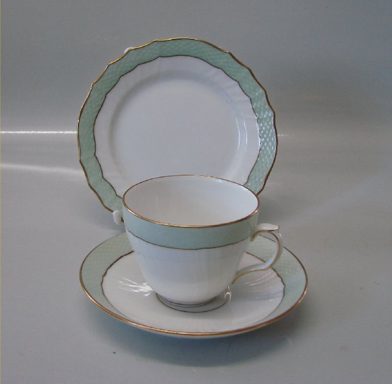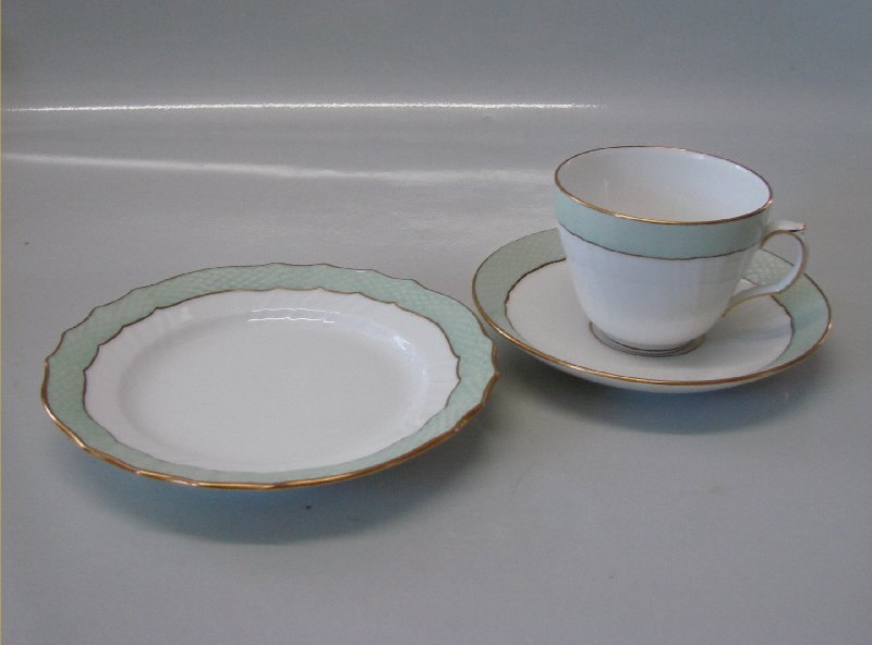 1870-952 Kaffekop 6.5 x 8 cm /18 cl. (072) og underkop 14,4 cm (071) Svejfet # 952 Kongelig Dansk Spise- og kaffestel med grøn bort