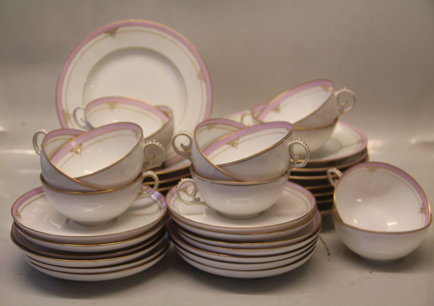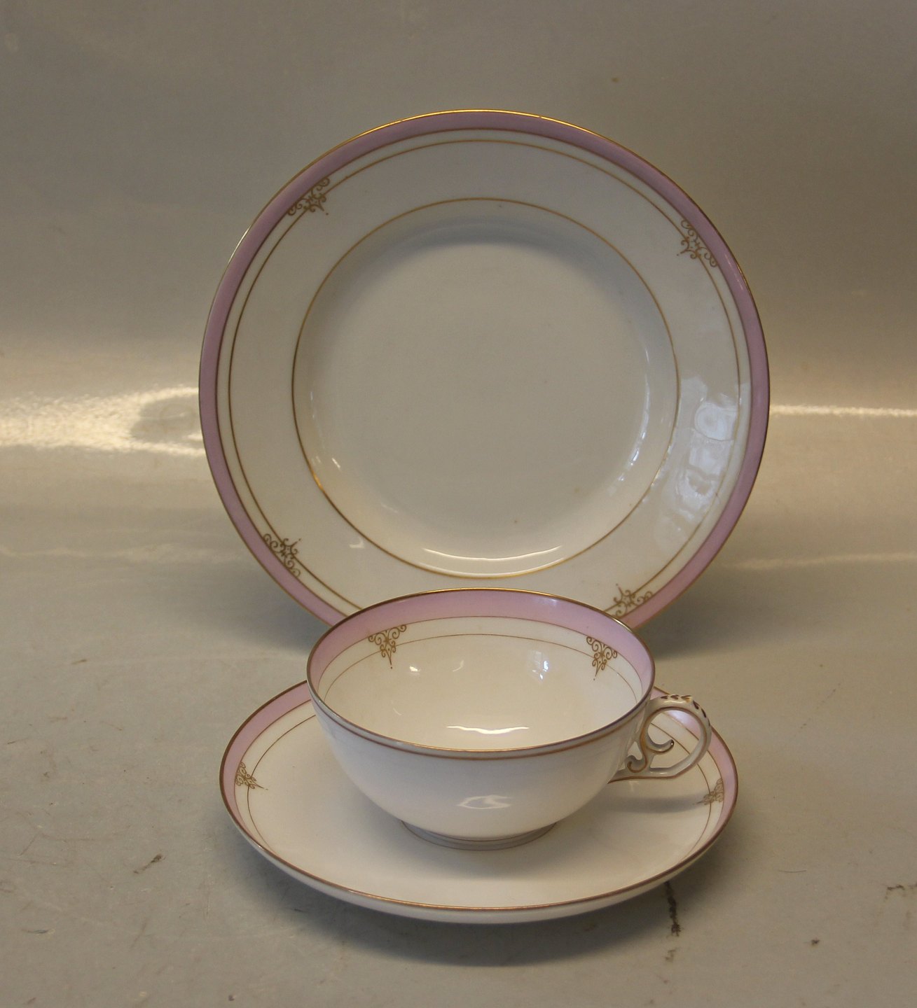 Antikt Kongelig Dansk Testel med lila bort og guld Helt tynde tekopper og kagetallerkener 24 dele