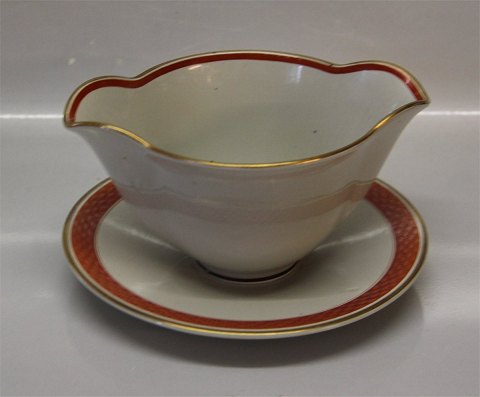 Sovseskål, rund 9 x 19 cm Alluminia Tureby Stel Dekoration 254 Design Nils Thorsson 1934 Rødt bånd og guld Håndmalet på Viktoria III Turreby