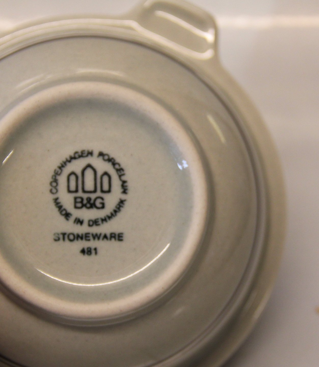 481 Kop 6 x 14.6 cm med ører Diameter 12.5 cm 2,7 dl og underkop 16,5 cm Dansk B&G Columbia Stentøjstel Stoneware