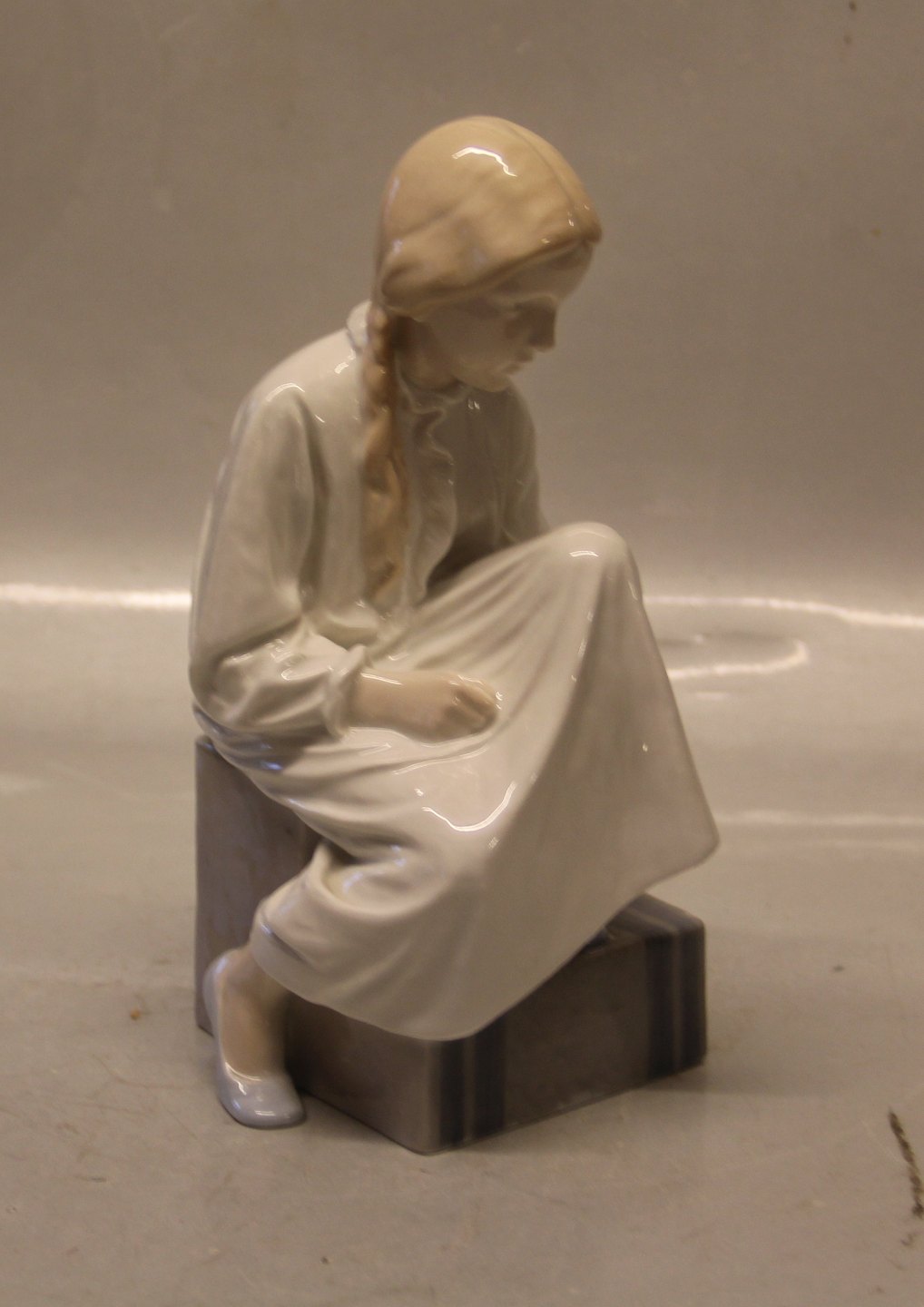 B&G 1841 Siddende pige på trappe 21.5 cm Signeret IPI Bing & Grøndahl