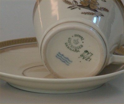 Royal Copenhagen # 947 Tableware Gold encrusted rim, Gold Clover Flowers on Cream Base called Liselund Designed by Thorkild Olsen In nice and mint condition