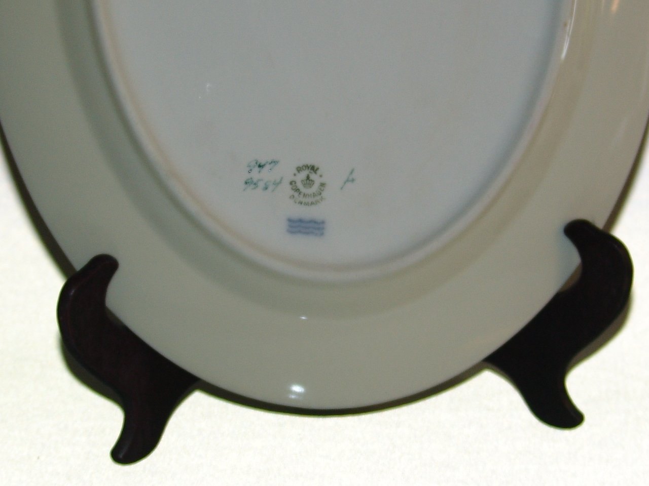 9584-947 Fad, ovalt 26 x 34 cm Liselund (Gl.) # 947 Cremefarvet stel Gylden Kløverblomst Royal Copenhagen