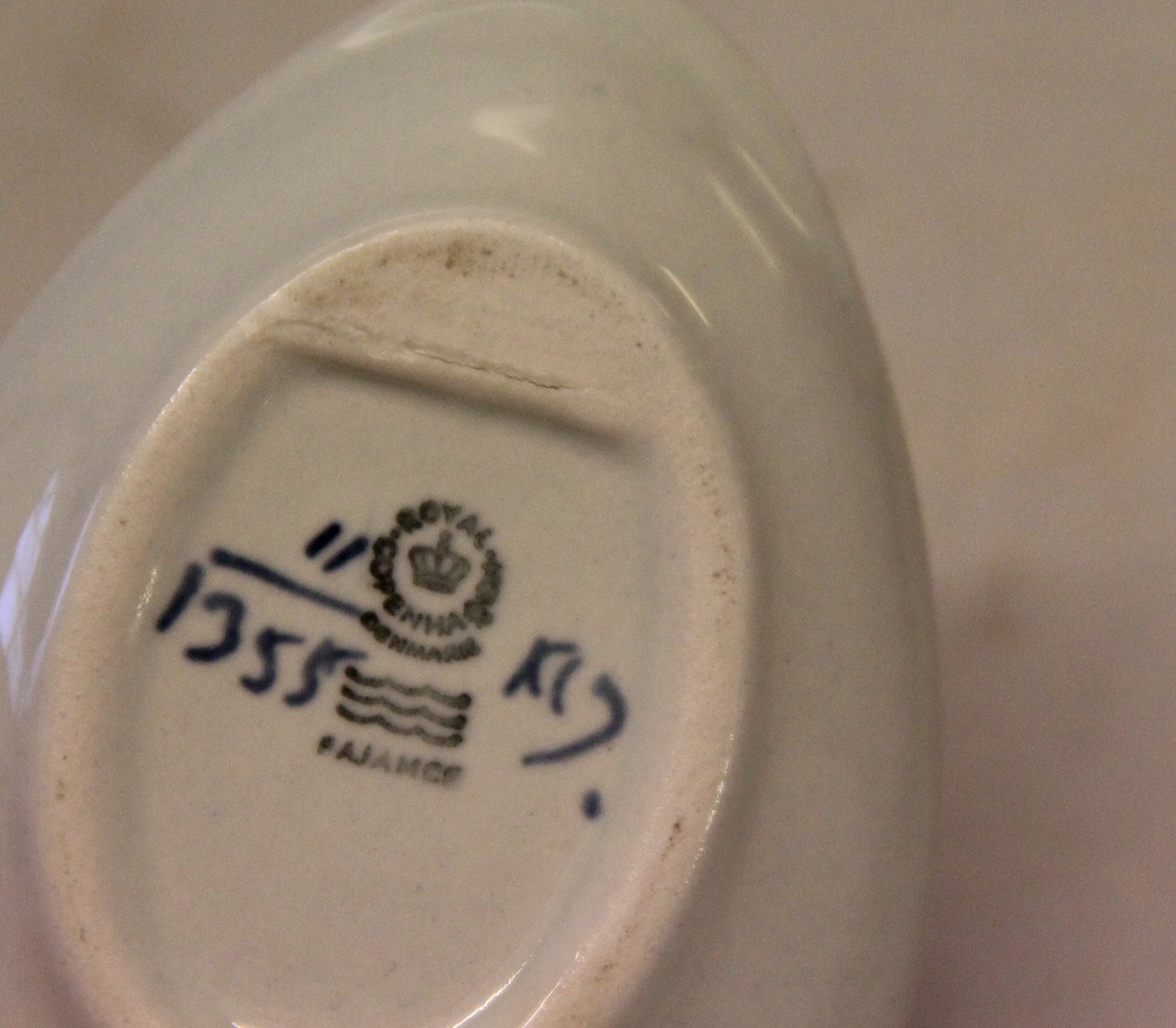1355-11 Muslingeformet kuvert assiet 9.3 x 6.4 cm smørskål Royal Copenhagen Aluminia Tranquebar I fin og hel stand