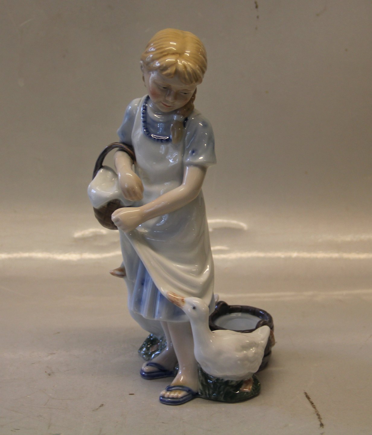 Beskrivelse: 0450 Kgl. Pige med Ænder 25 cm Allan Therkelsen Børn med bondegårdsdyr (1249450) fra Royal Copenhagen I hel og fin stand