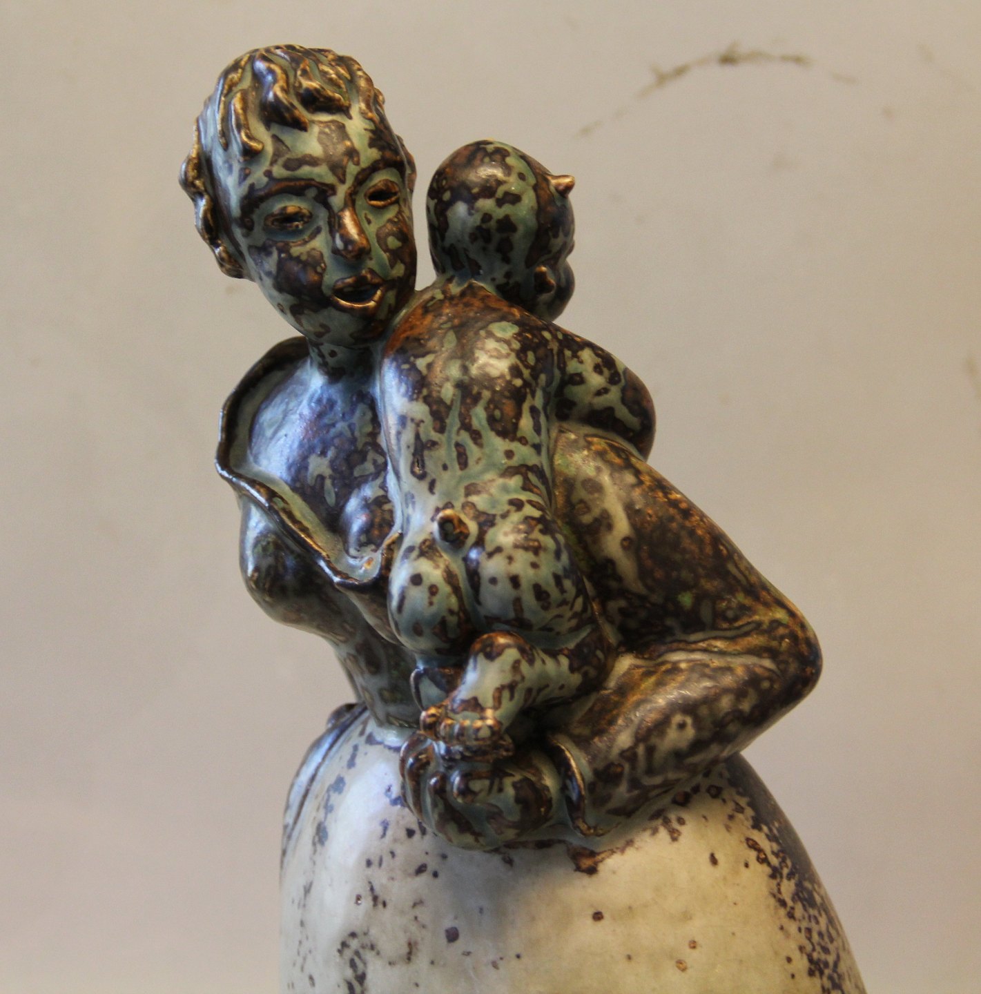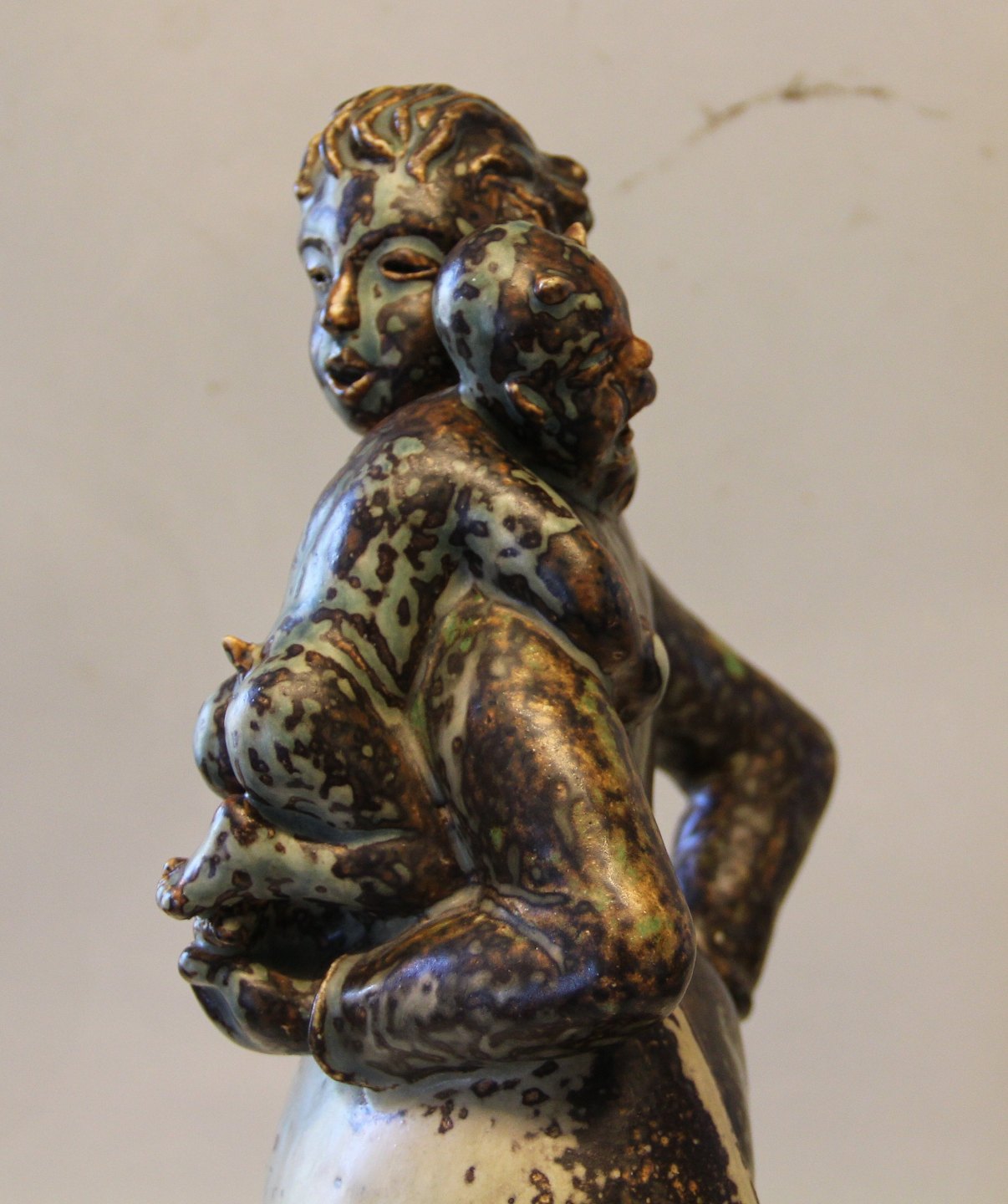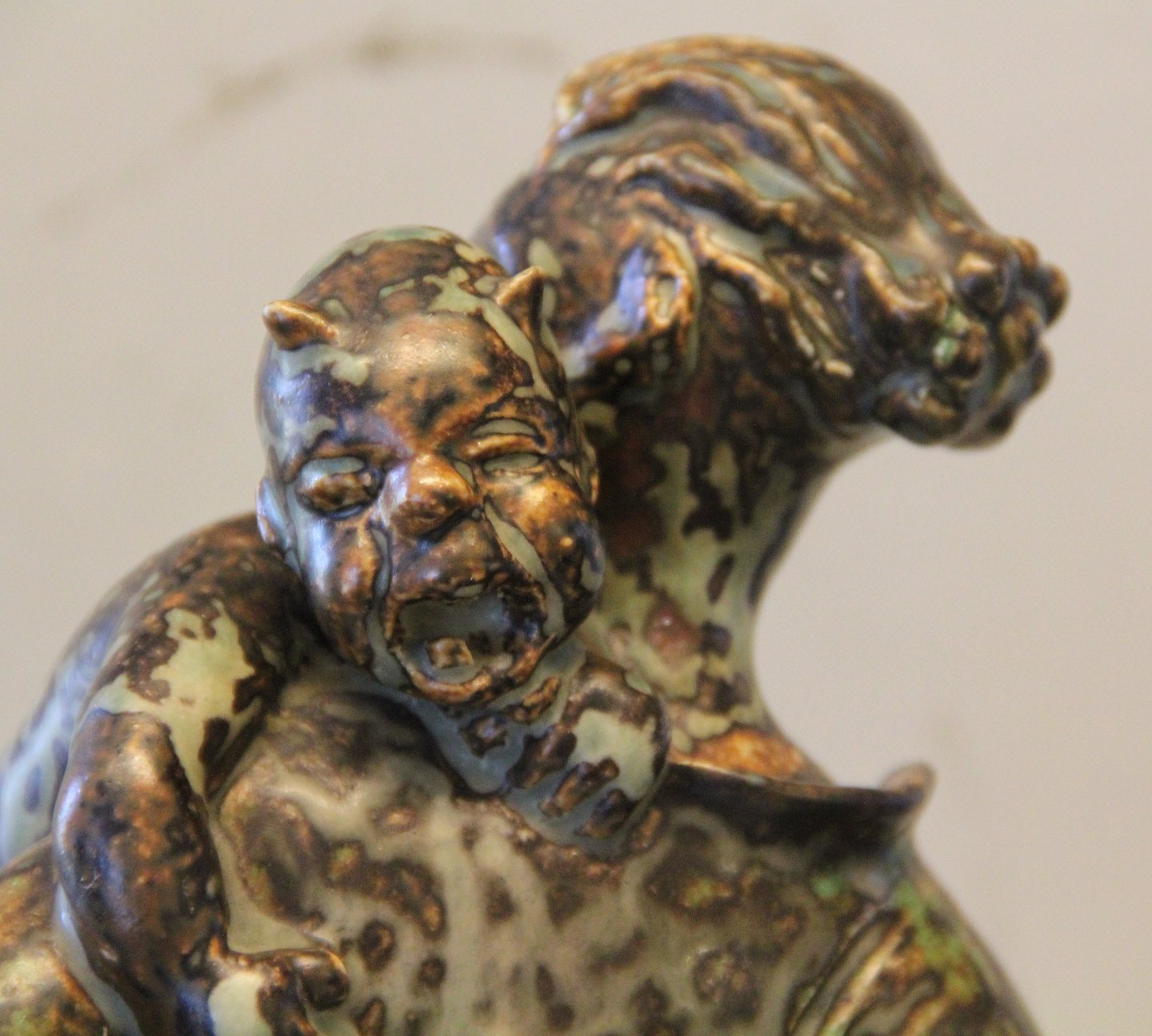Beskrivelse: Unika Kgl. Bode Willumsen mor med fauneunge 36.5 cm Royal Copenhagen stentøj I fin og hel stand
