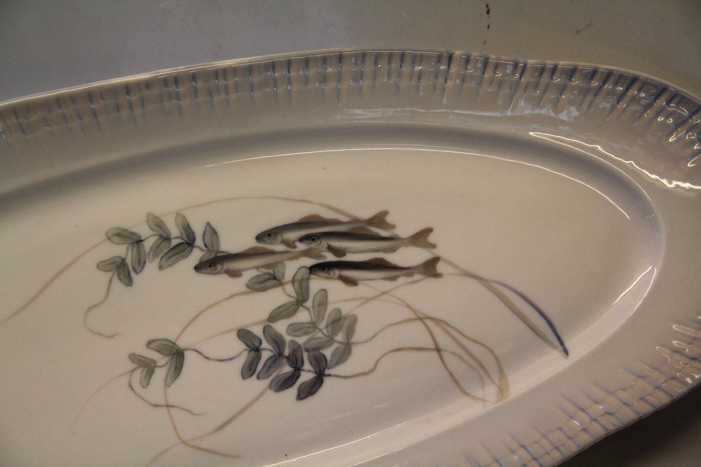 Beskrivelse: Kgl. Art Nouveau 69-9511 Fiskefad 61.5 cm fra Royal Copenhagen I hel og fin stand Den kongelige Porcelainsfabrik
