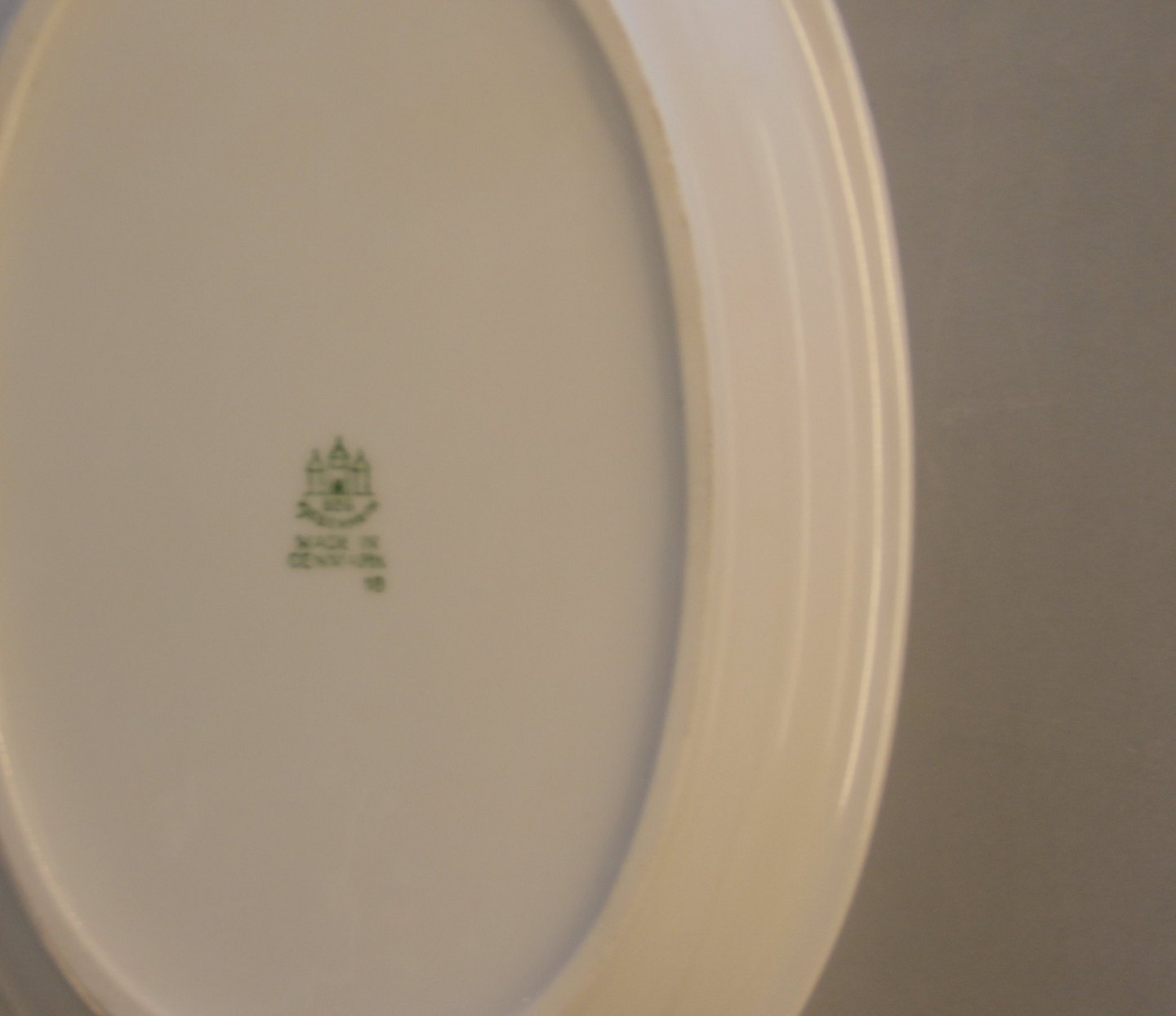 018 Ovalt fad 24 cm (318) Norma Hvid B&G med grå kant og guld