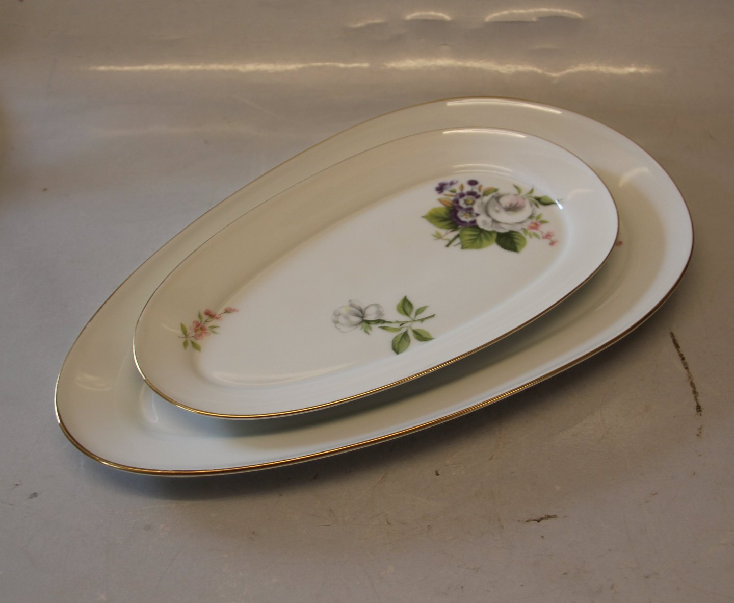 Hvidt porcelæn med guldkant. Decor: Hvid vild rose og violer. form 676 I fin og hel stand.