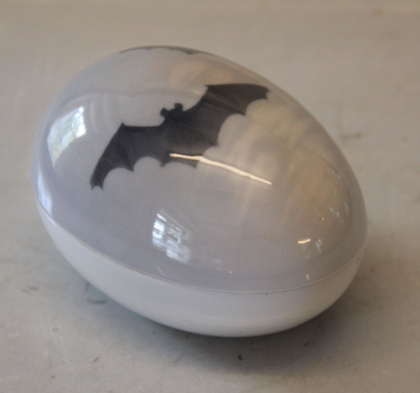 Beskrivelse: Art Nouveau 1251-658 Kgl. Bonbon skål med flagremus på låg 9.5 x 14 cm Pre 1923 (Underdel 1112-658) fra Royal Copenhagen I hel og fin stand Flagermus