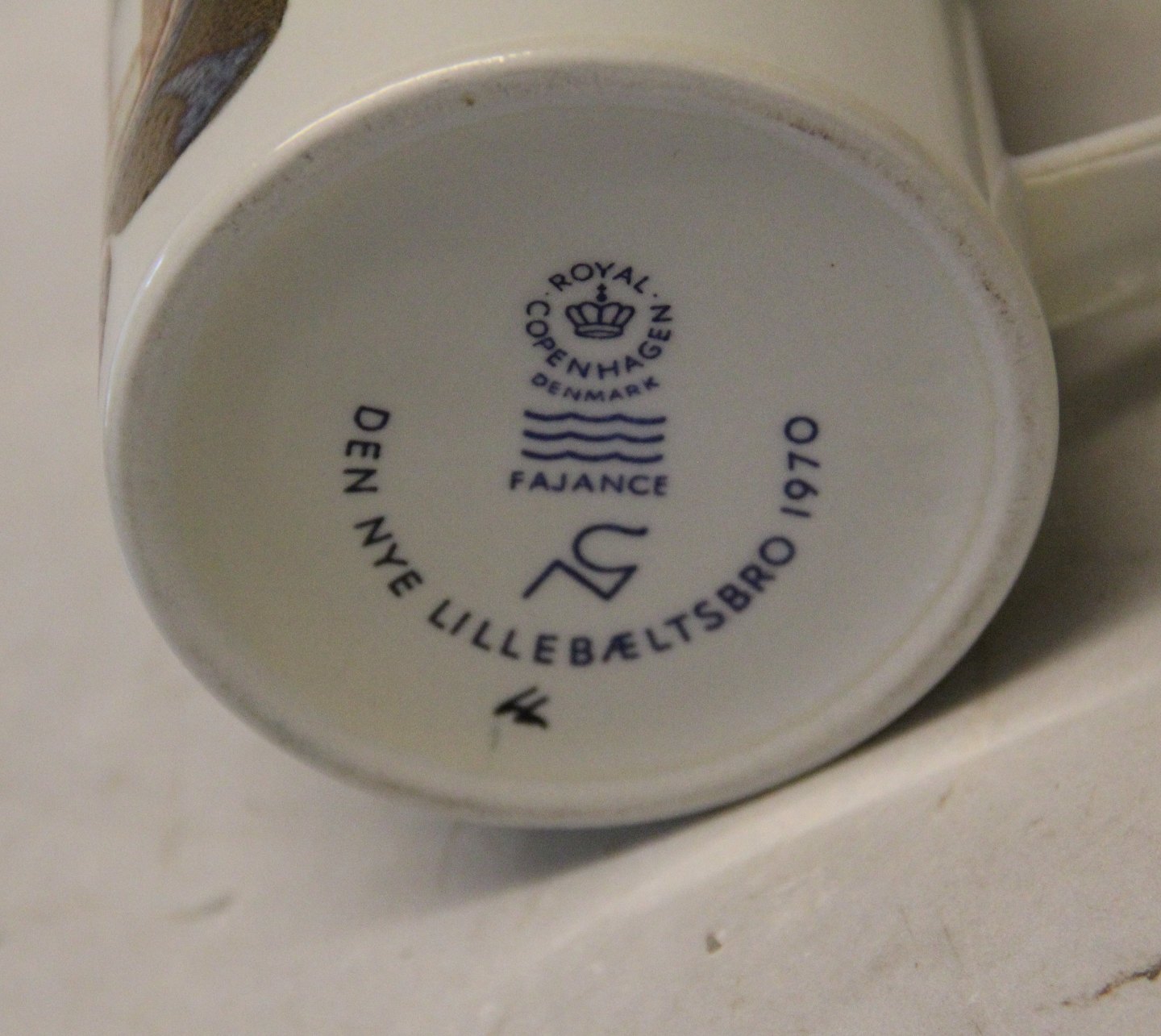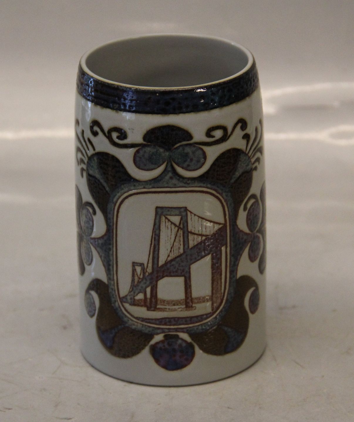 Fajance krus Den Nye Lillebæltsbro 1870 13.5 cm Royal Copenhagen Aluminia fajance