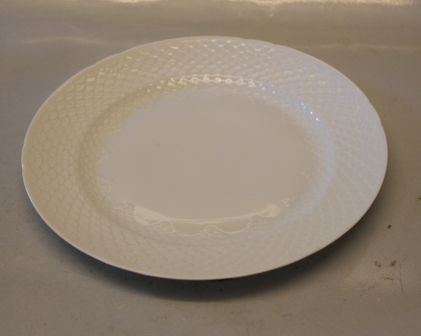 025 a Stor middagstallerken 26 cm (624) Dækketallerken Elegance Bing & Grøndahl Spisestel Hvidt og Cremefarvet porcelæn, med skæl. I fin og hel stand.