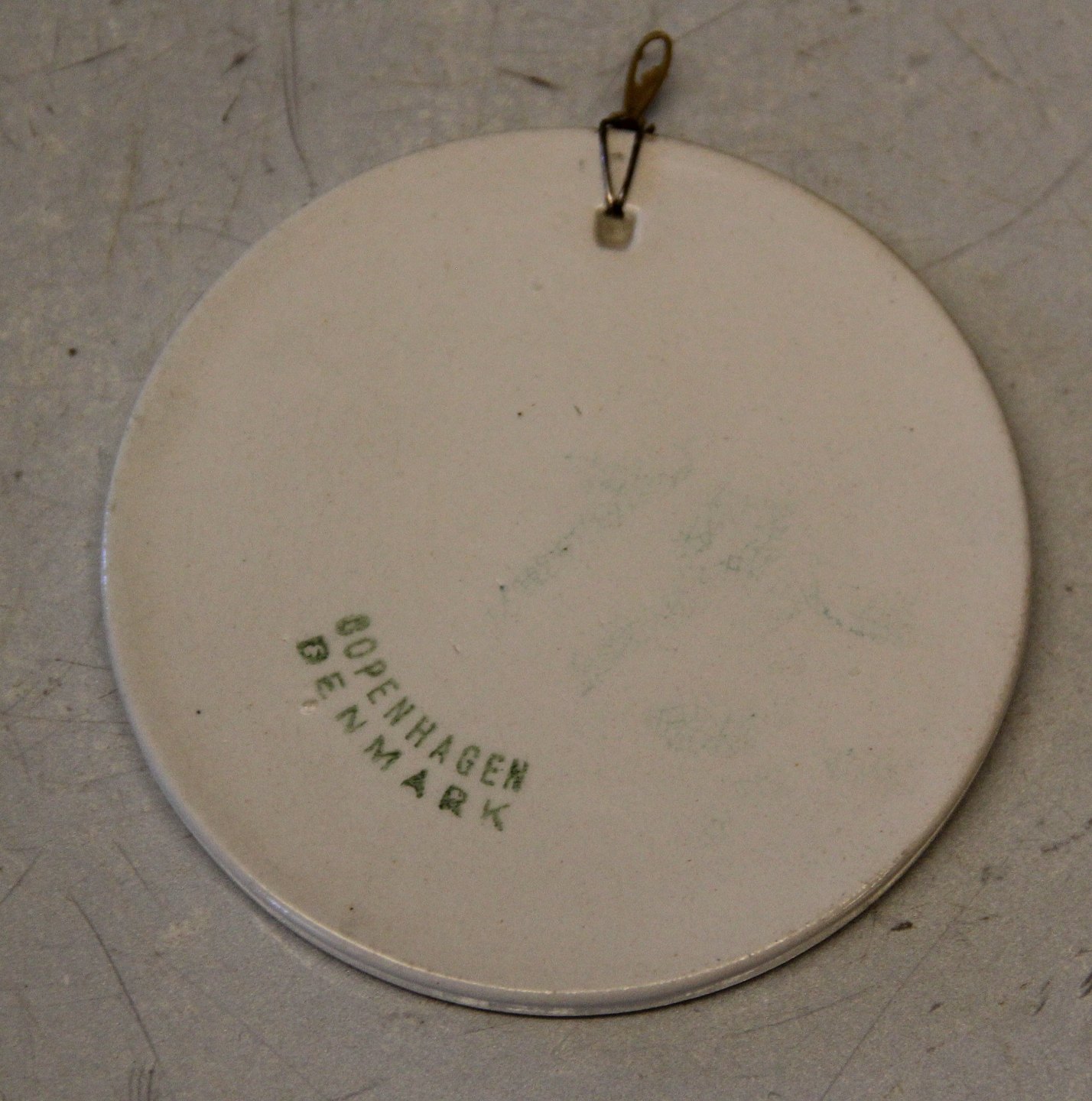 Beskrivelse: 1917 b Dreng med blomst Louis Moe 8,7 cm Aluminia kunstfajance Aluminia Fajance Børnehjælsplatter Børnehjælpsplaketter 1905, 1909-1913 Håndmalede. 1914 - 1930 Luftmalede.