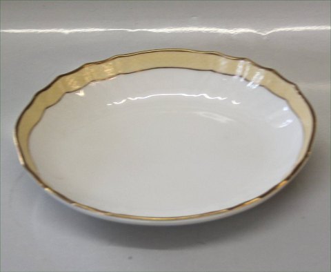 1691 Rundt kagefad 29.5 cm Svejfet # 788 Kongelig Dansk Svejfet Porcelæn - hvidt med beige (Chamois Fond) kant og guld