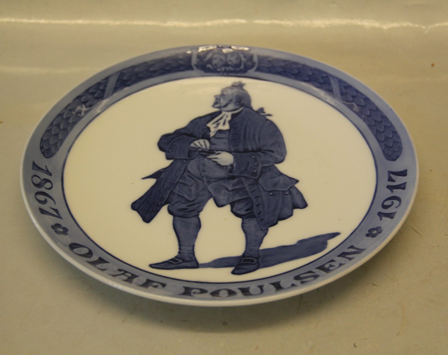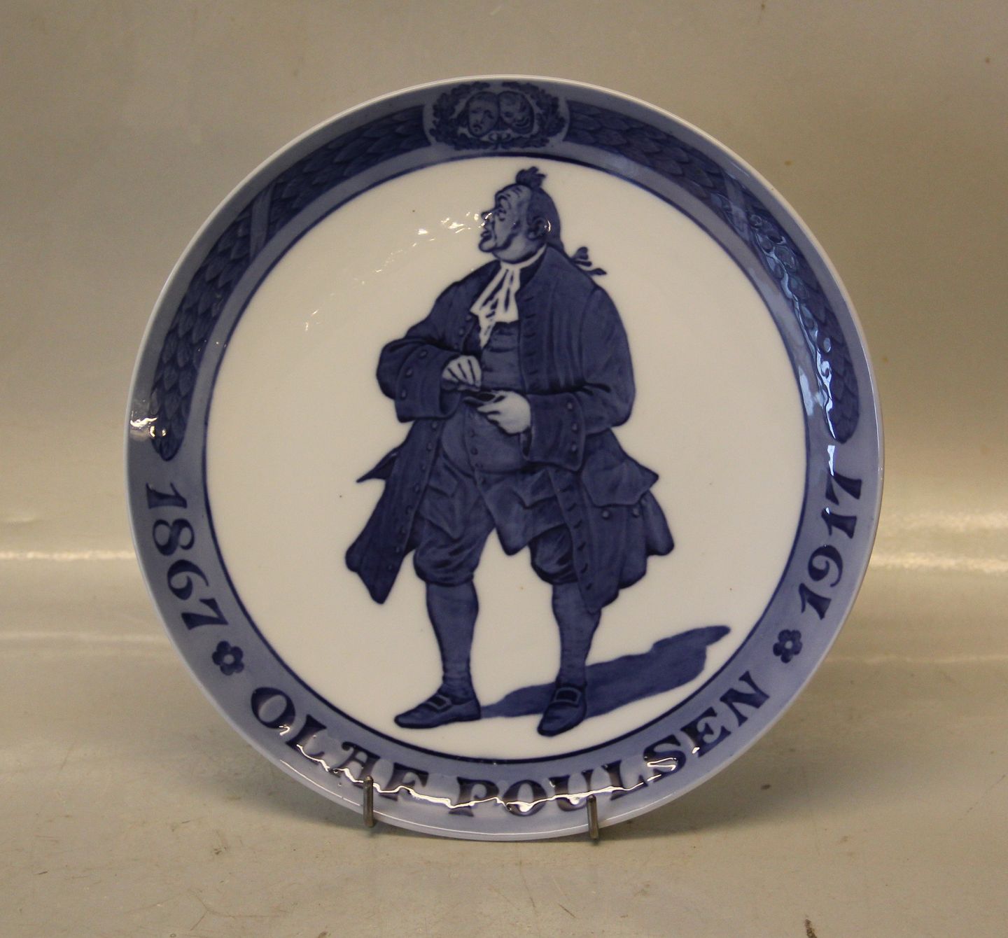Beskrivelse: RCM#170 Skuespilleren Oluf Poulsen i kostume. Udført til fordel for skuespillerforeningen 1867 Oluf Poulsen 1917 Design: Christian Thomsen 22,5 cm. Royal Copenhagen mindeplatter også kaldet lejlighedsplatter fremstillet til særlige lejligheder eller på bestilling. Dem kongelige porcelænsfabrik har fremstillet over 500 forskellige.