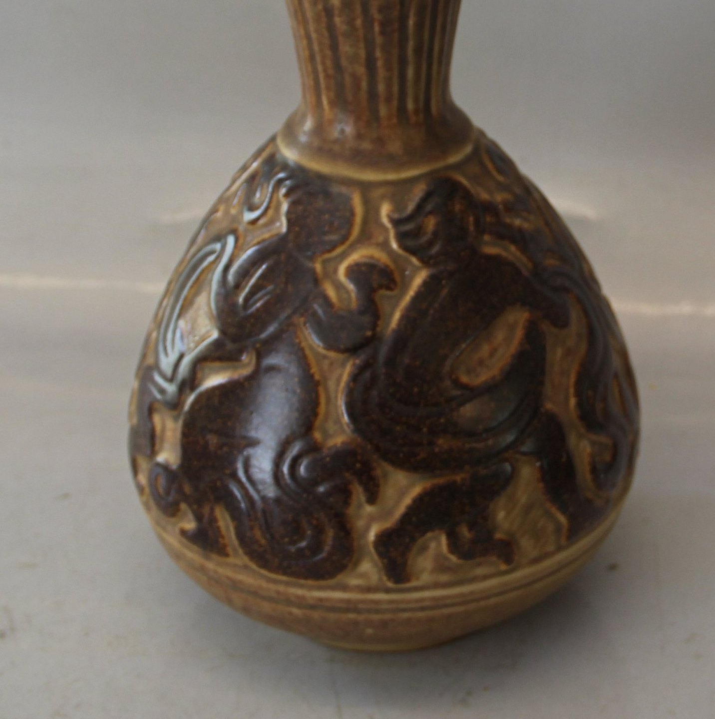 Michael Andersen & Søn, Bornholm 6404 Vase with people in relief 23 cm M.A.& S.