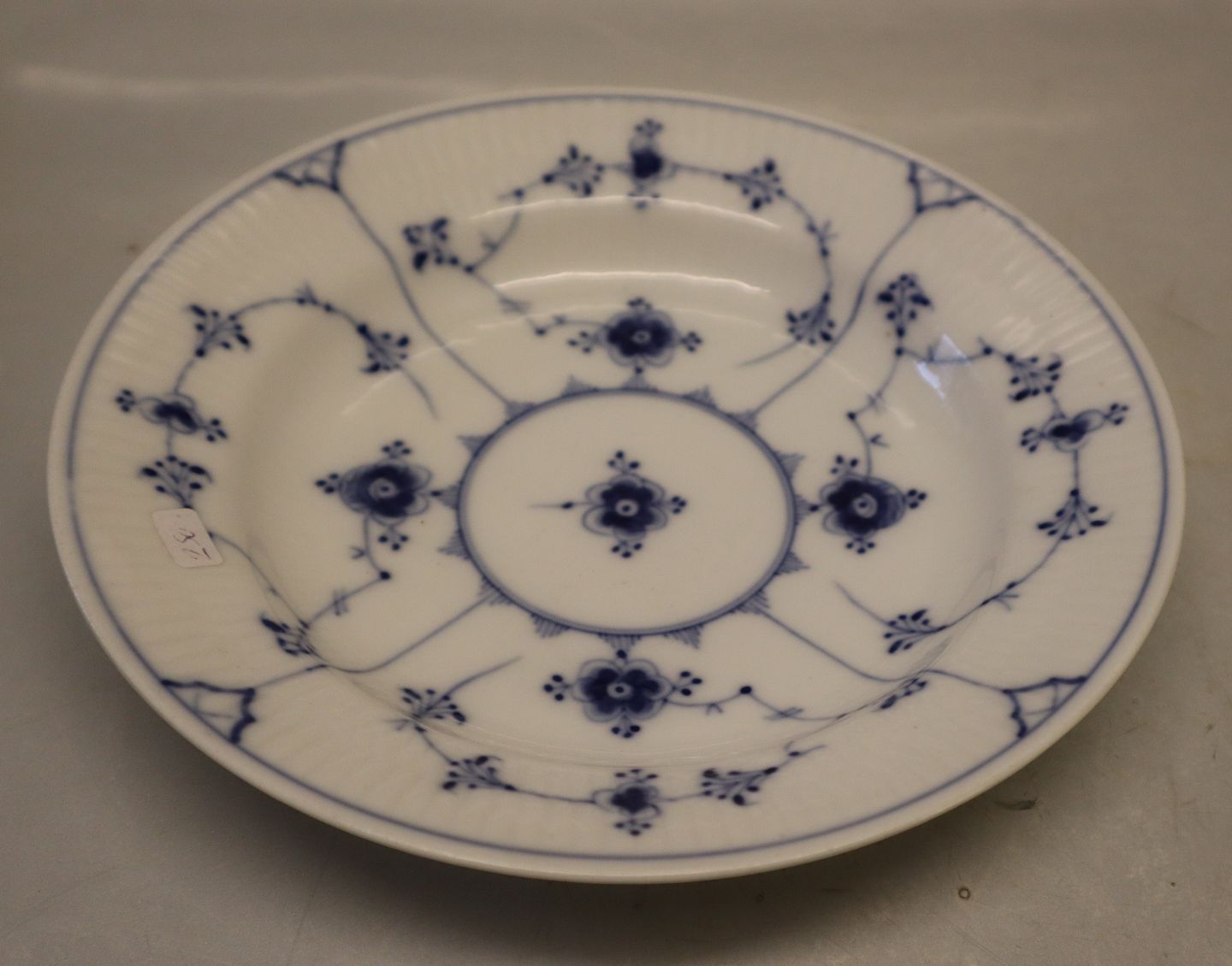 024 Lille dyb suppetallerken ca 19 cmBing & Grøndahl Musselmalet på det riflede porcelæn. I fin og hel stand