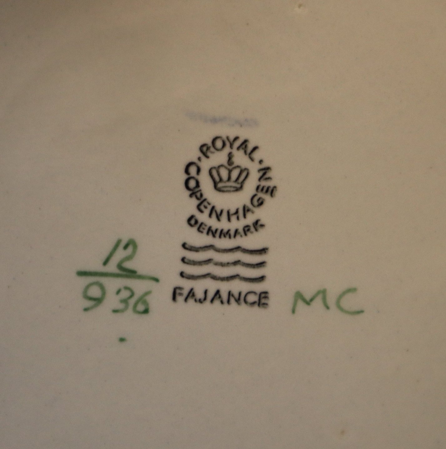 0936-12 Kagefad, rundt 25 cm Royal Copenhagen Aluminia Grøn Tranquebar I fin og hel stand